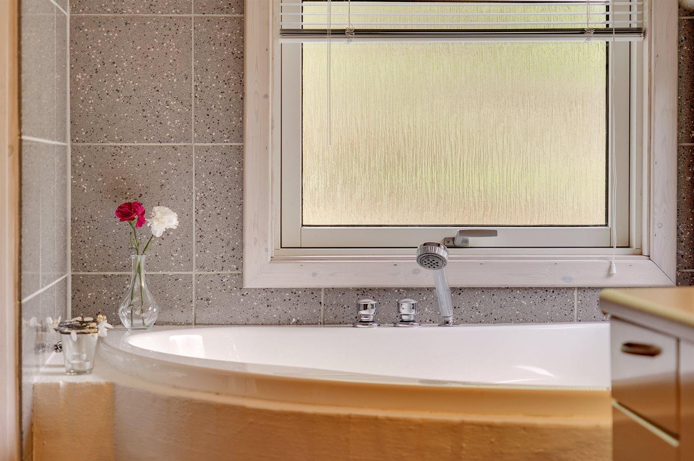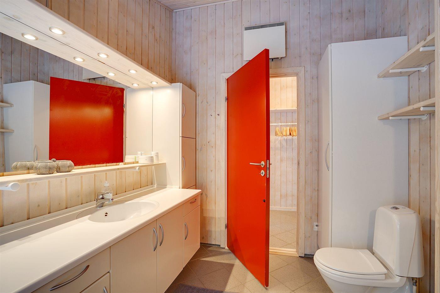 Der er 2 badeværelser med bruseniche og 2 toiletter. Der er gulvvarme på 2 badeværelser. I saunaen er der mulighed for afslapning.