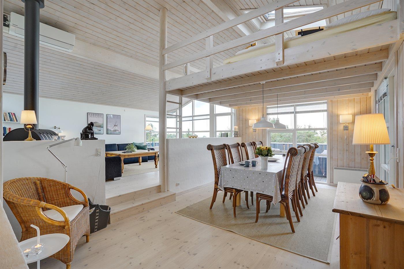 Sommerhuset egner sig til 8 personer samt 1 barn op til 3 år. 1 af sovepladserne er kun egnet til større børn (4-11 år). Ferieboligen er på 121 m² og er bygget i 2000. Det er ikke tilladt at medbringe husdyr. Der er gulvvarme i alle klinkegulve. Ferieboligen har vaskemaskine. Tørretumbler. Frysekapacitet på 40 liter. Der er desuden brændeovn. Til de små er der 2 stk. barnestole.