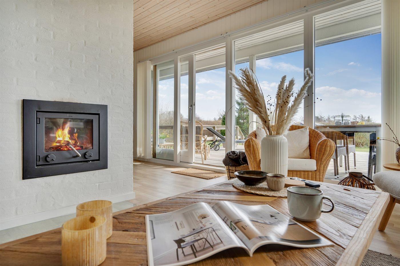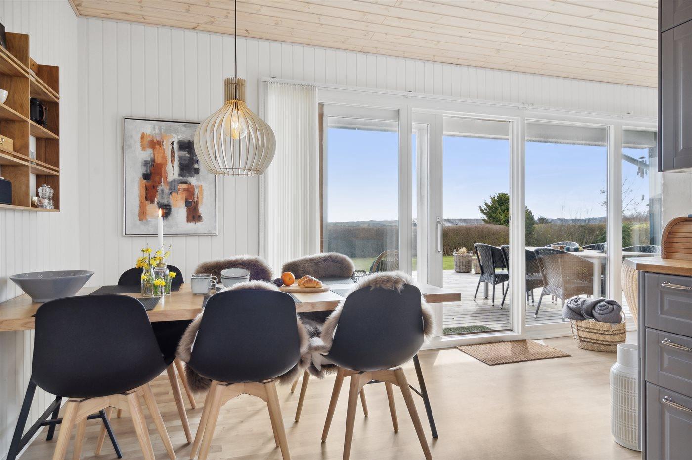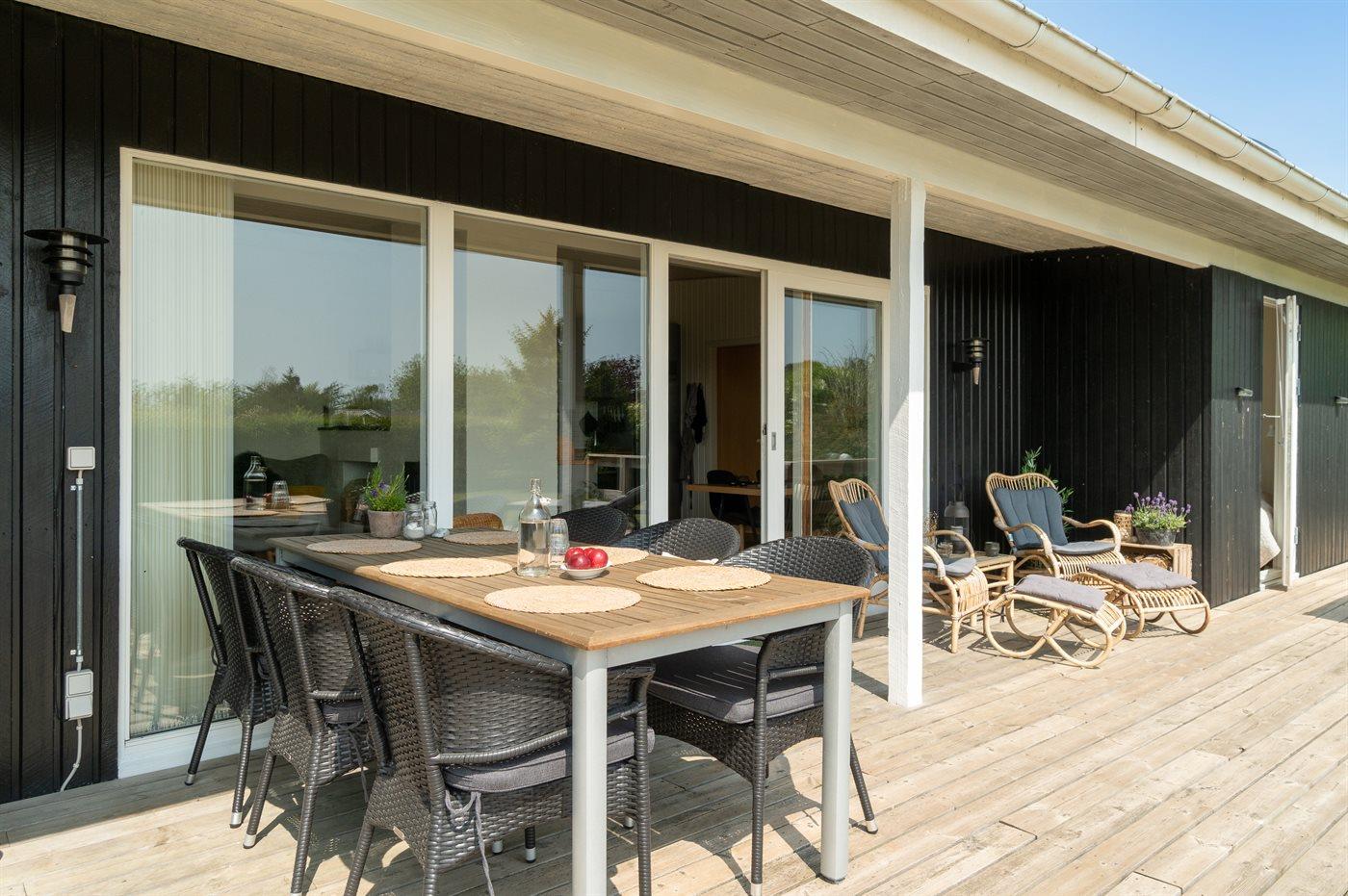 Der er direkte adgang til den store terrasse med mange læmuligheder og en flot udsigt. Haven er stor og indhegnet, således der er mulighed for at nyde udelivet under private forhold.