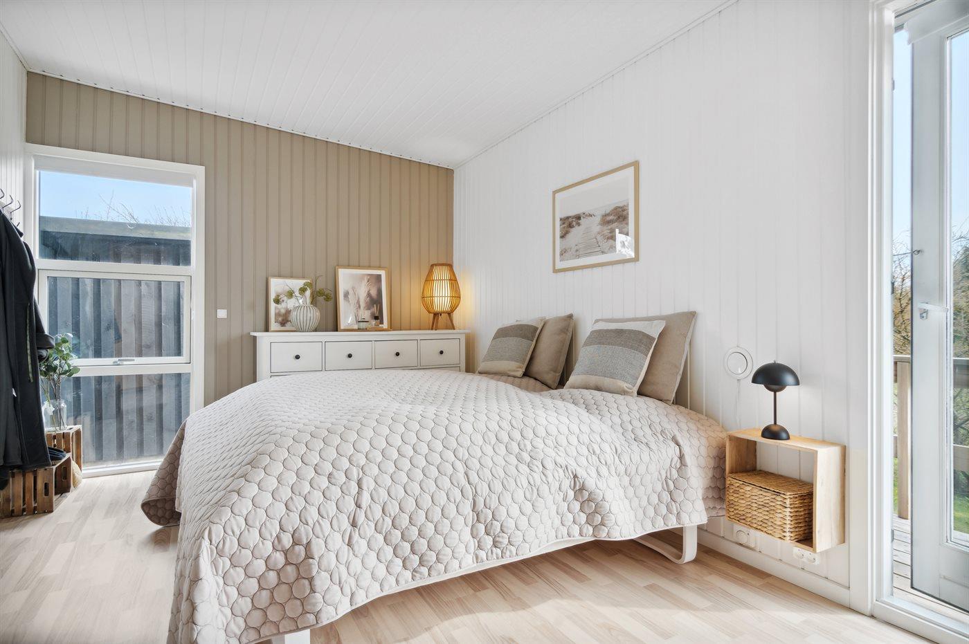 Der er i alt 3 soveværelser. Sovepladserne fordeler sig på: 4 sovepladser i dobbeltsenge. 2 sovepladser i enkeltsenge. Derudover er der 1 stk. barneseng.