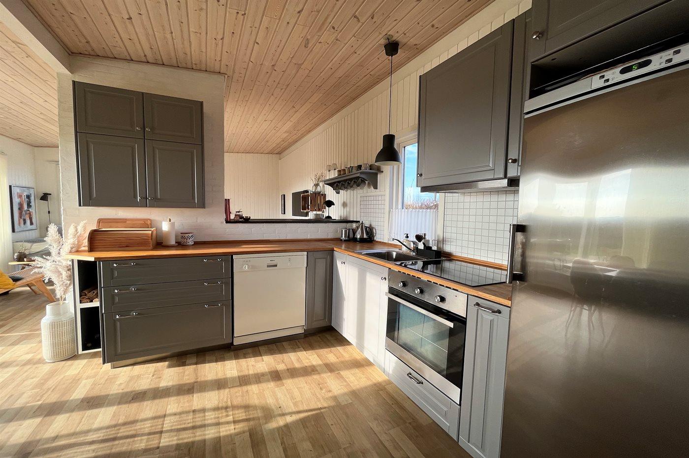 Køkkenet er udstyret med 1 køleskab. Der er 4 keramiske kogeplader, varmluftovn, mikrobølgeovn samt opvaskemaskine.