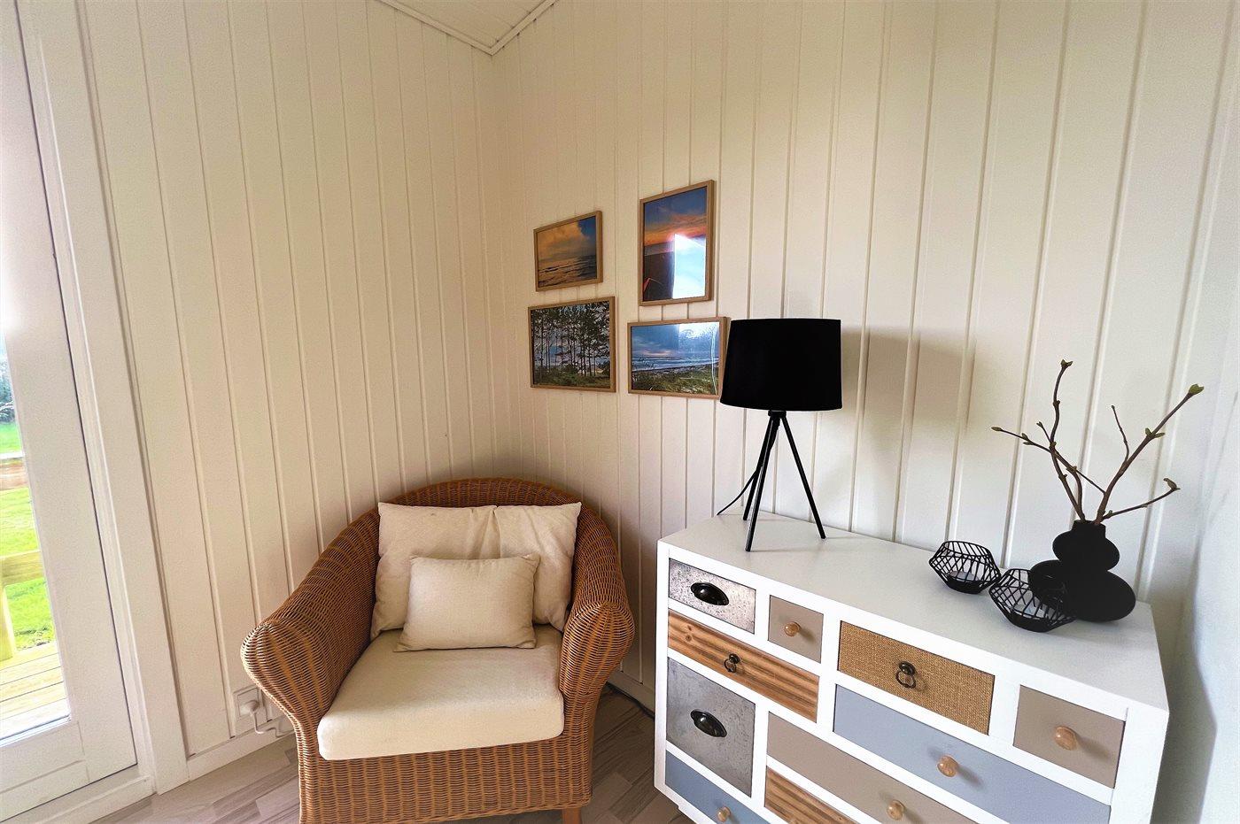 Ferieboligen er beliggende på en 1249 m² stor havegrund. Grunden er indhegnet. Der er 400 m til havet. Nærmeste forretning er beliggende i en afstand af 2500 m. Der er en golfbane i en afstand af 2000 m. Til ferieboligen hører åbent terrasseareal. Desuden er der overdækket terrasse. Der er redskabsrum. Bålsted. Grill til rådighed. Parkering ved ferieboligen.