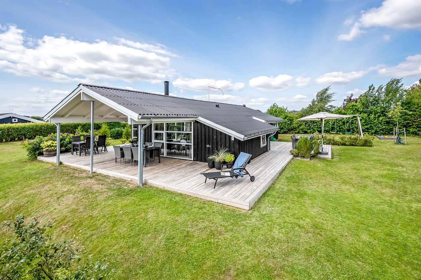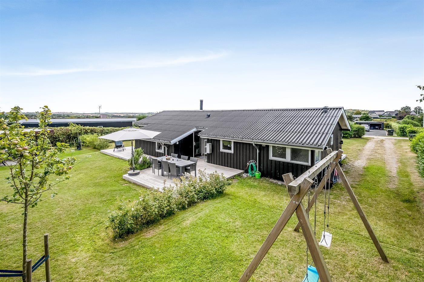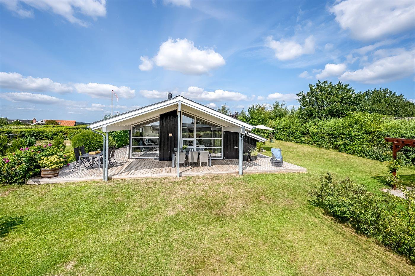 Moderne sommerhus nær Boeslum Strand med stor have, terrasse og wellness faciliteter.