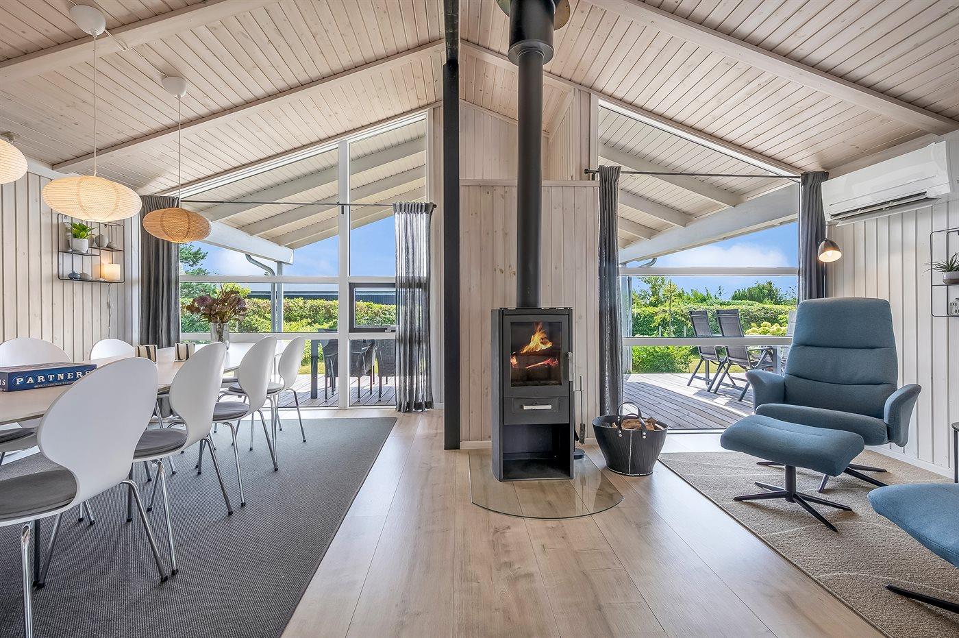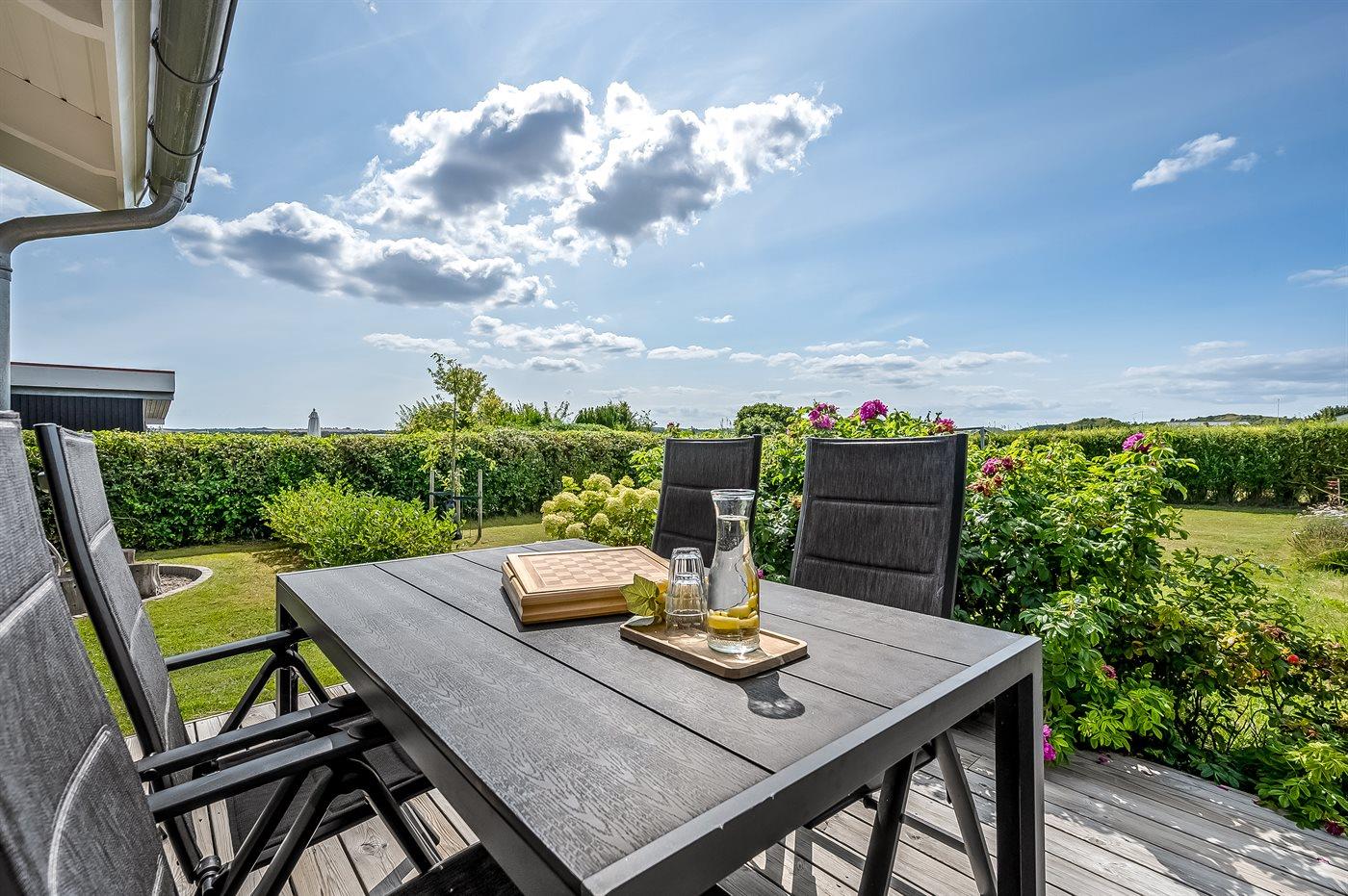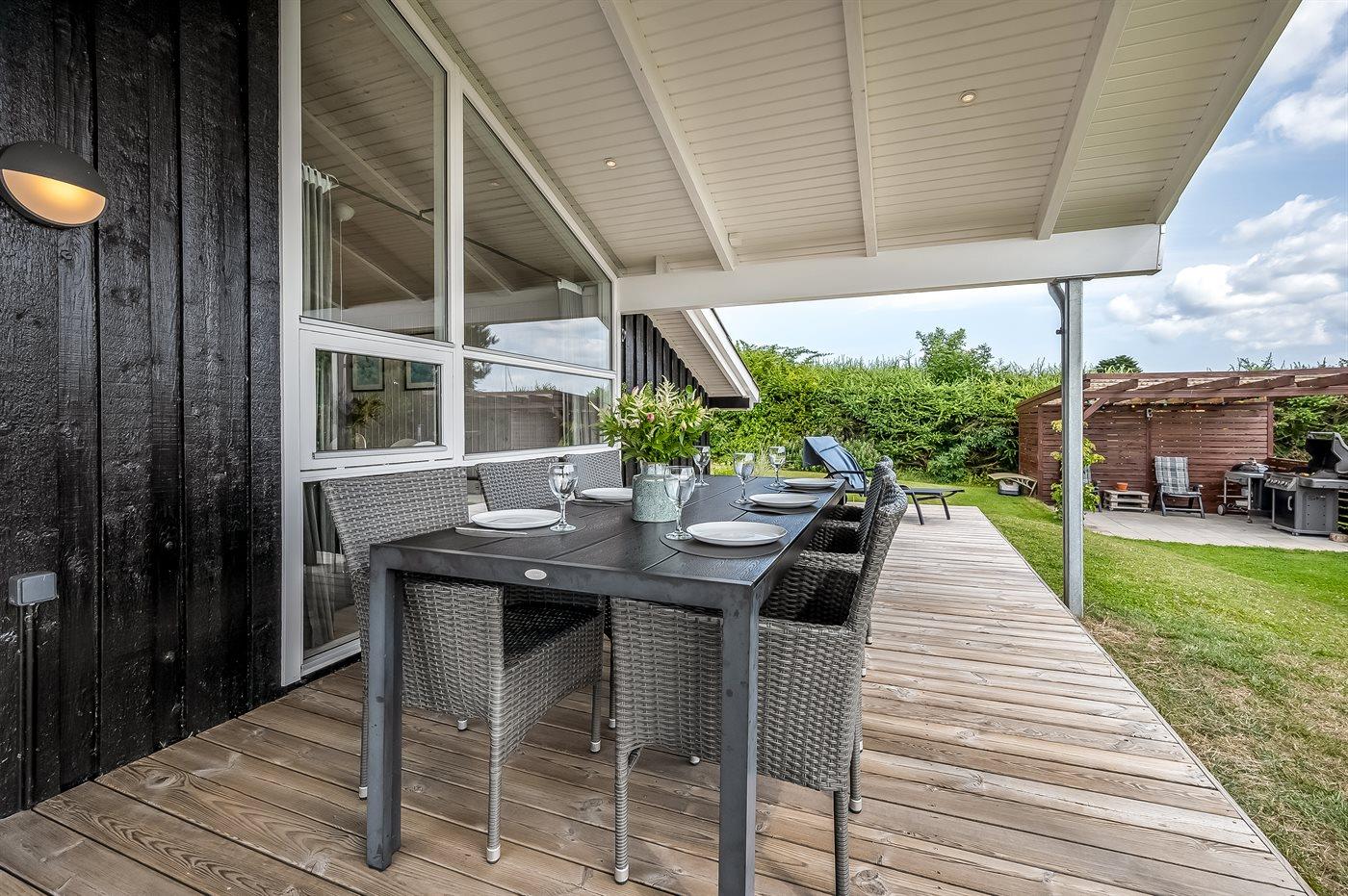 Moderne sommerhus nær Boeslum Strand med stor have, terrasse og wellness faciliteter.