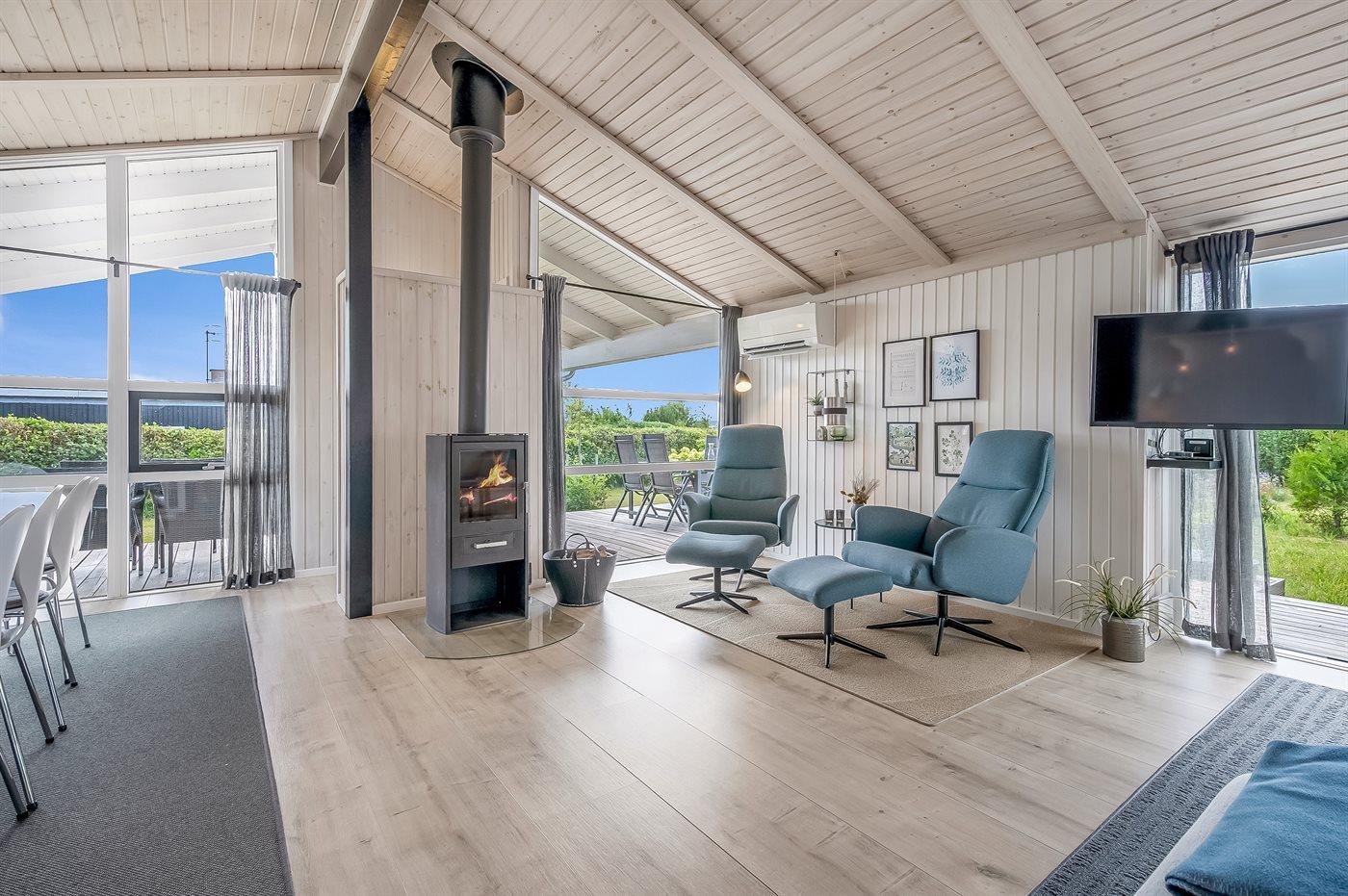 Hurtigt Wi-Fi, en TV-pakke med blandt andet tyske kanaler, og Apple-TV sikrer indendørsunderholdningen på køligere dage. Huset har også en Type 2 ladeboks på 11kW til elbiler - medbring et type 2 ladekabel.