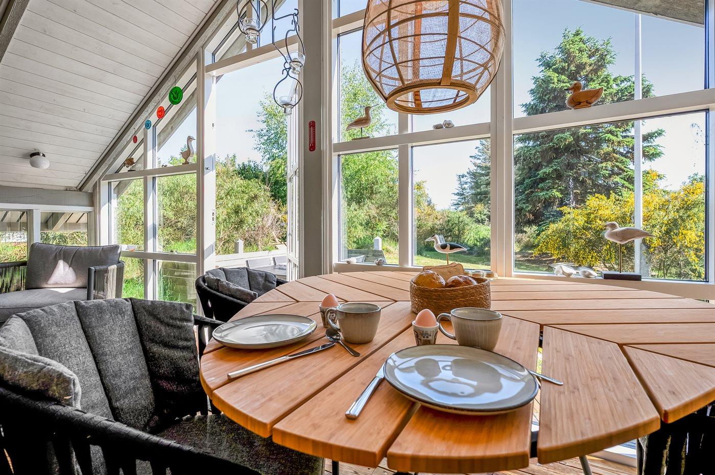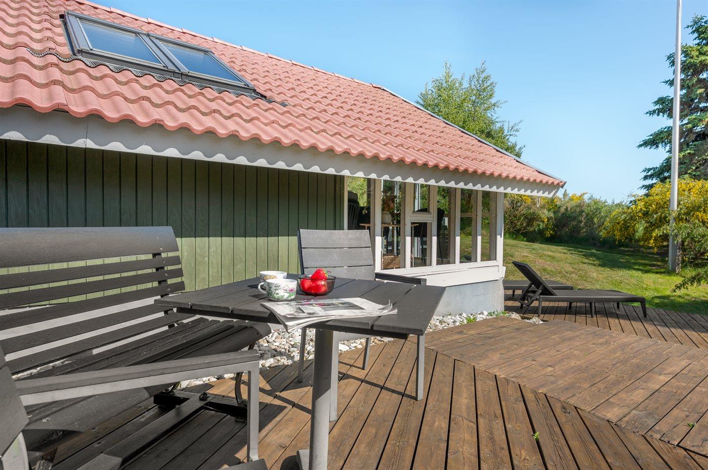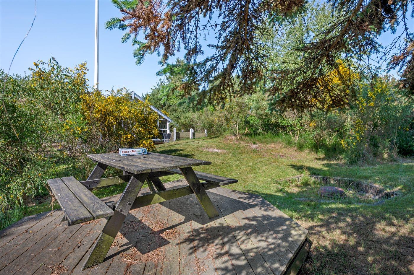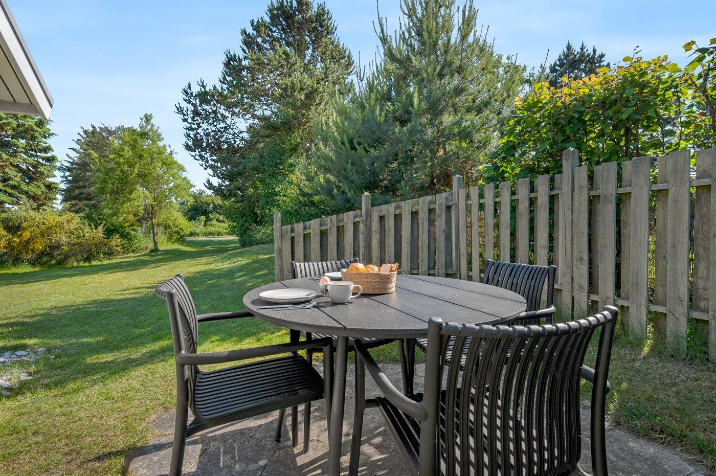 Ferieboligen er beliggende på en 1200 m² stor naturgrund. Der er 400 m til havet. Nærmeste forretning er beliggende i en afstand af 3000 m. Til ferieboligen hører åbent terrasseareal. Desuden er der overdækket terrasse. Gynge. Bålsted. Grill til rådighed. Der er installeret stik til opladning af elbil. Type 2 stik. Med 11 kW ladeeffekt. Parkering ved ferieboligen.