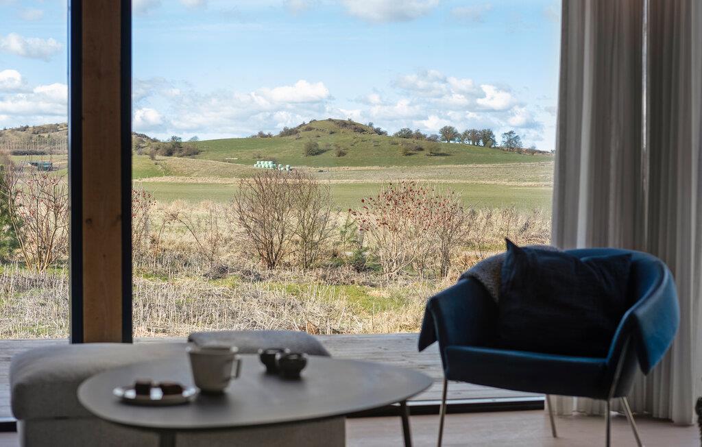 Arkitekttegnet sommerhus med panoramaudsigt, tæt på stranden ved Boeslum Strand nær Ebeltoft.