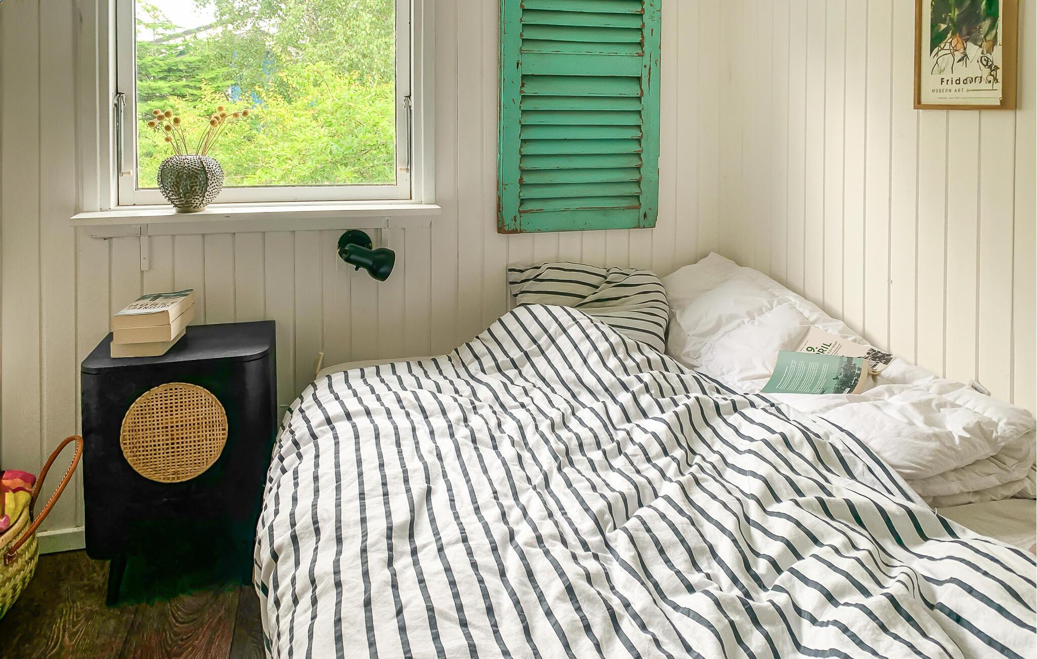 I dette sommerhus ved Boeslum Strand er der optimale rammer til at slappe af. Nyd sommerdagene på den store træterrasse, lad batterierne op i husets charmerende atmosfære og fyld dagene med skønne udflugter i det dejlige område. Begynd dagene med en kop kaffe og en solid morgenmad i den indbydende stue, hvor de varme, farverige detaljer får alle til at sænke skuldrene og mærke feriestemningen. Læn jer tilbage med en god bog i sofaen, når I trænger til en lille pause.