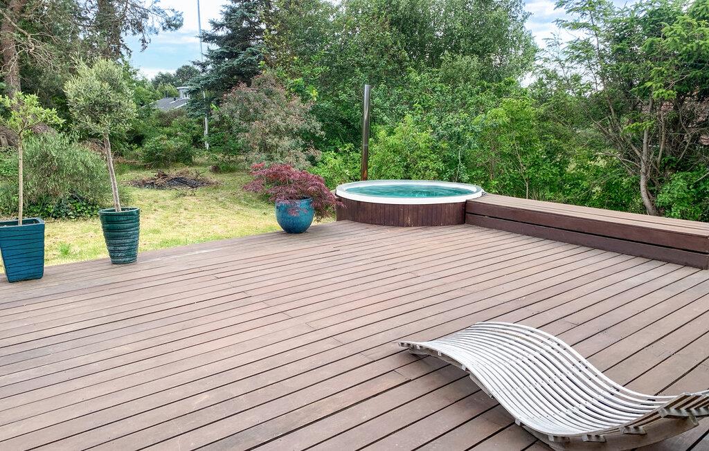 Man kan også nyde en stille stund i vildmarksbadet med frisk luft på kinderne, fuglesang foroven og en skøn udsigt til haven. Her kan man virkelig lade op efter en lang dag på farten.