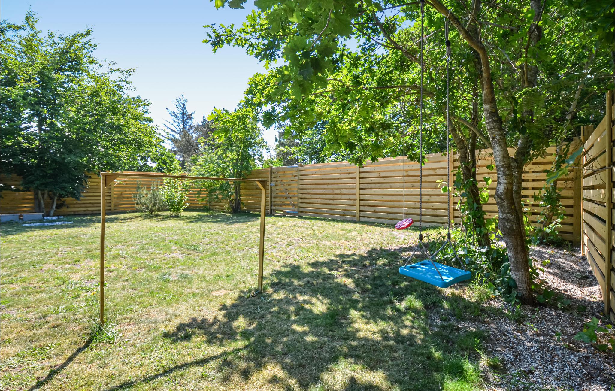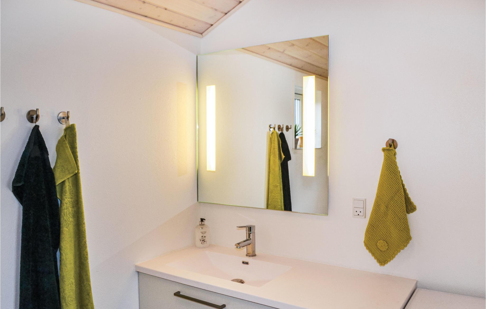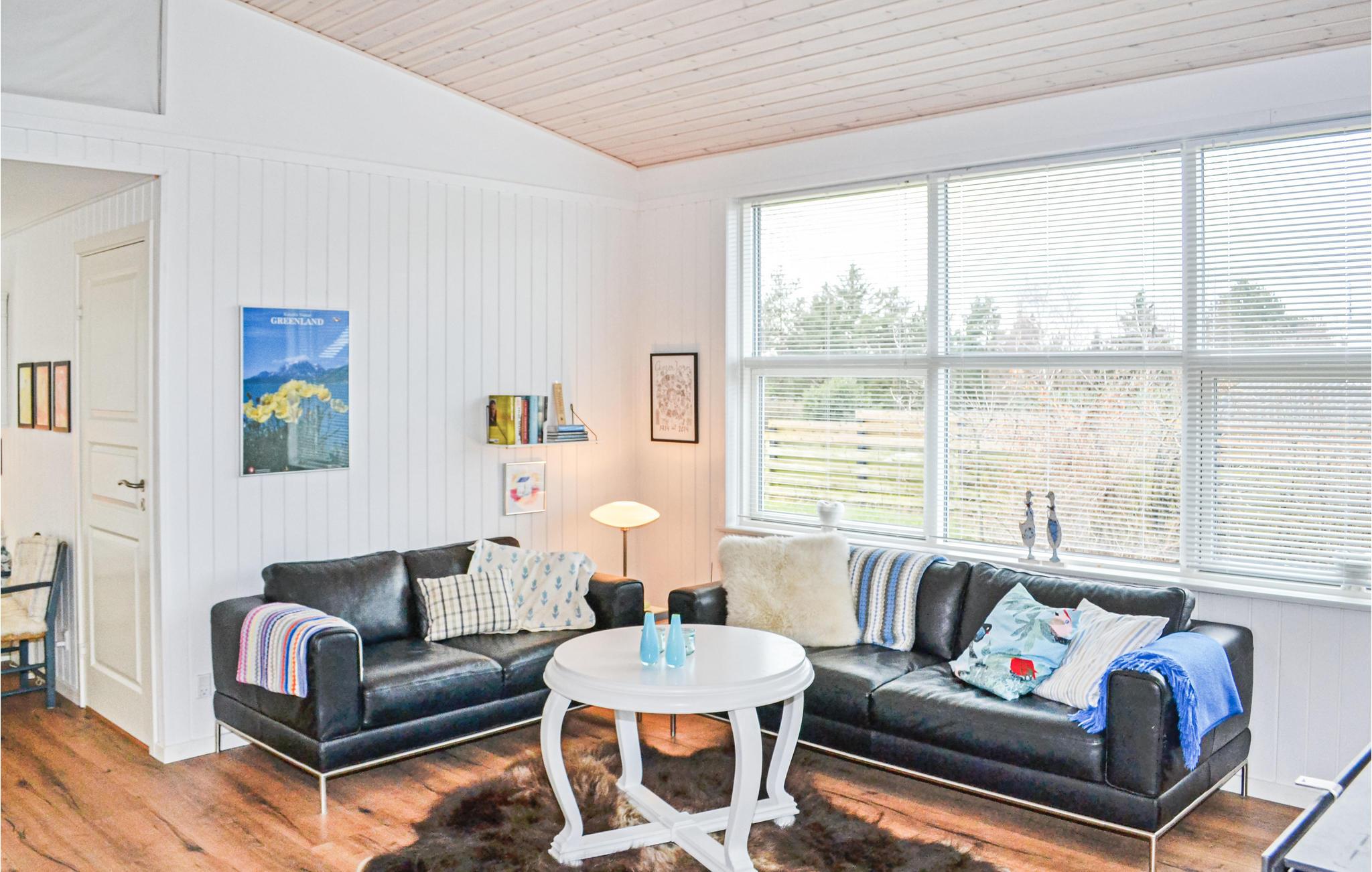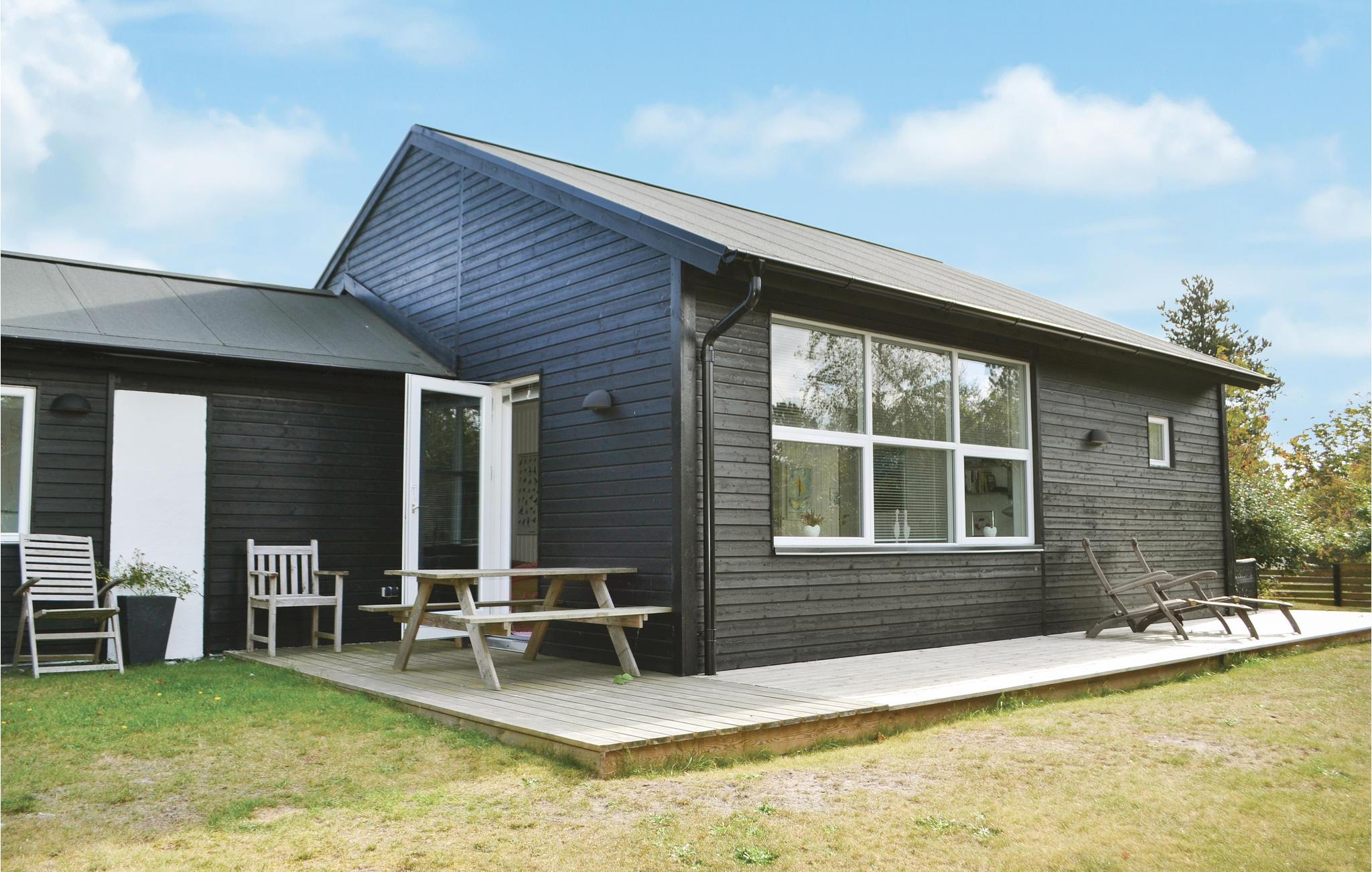 Moderne sommerhus nær Boeslum Strand med udendørs bruser og indhegnet grund.