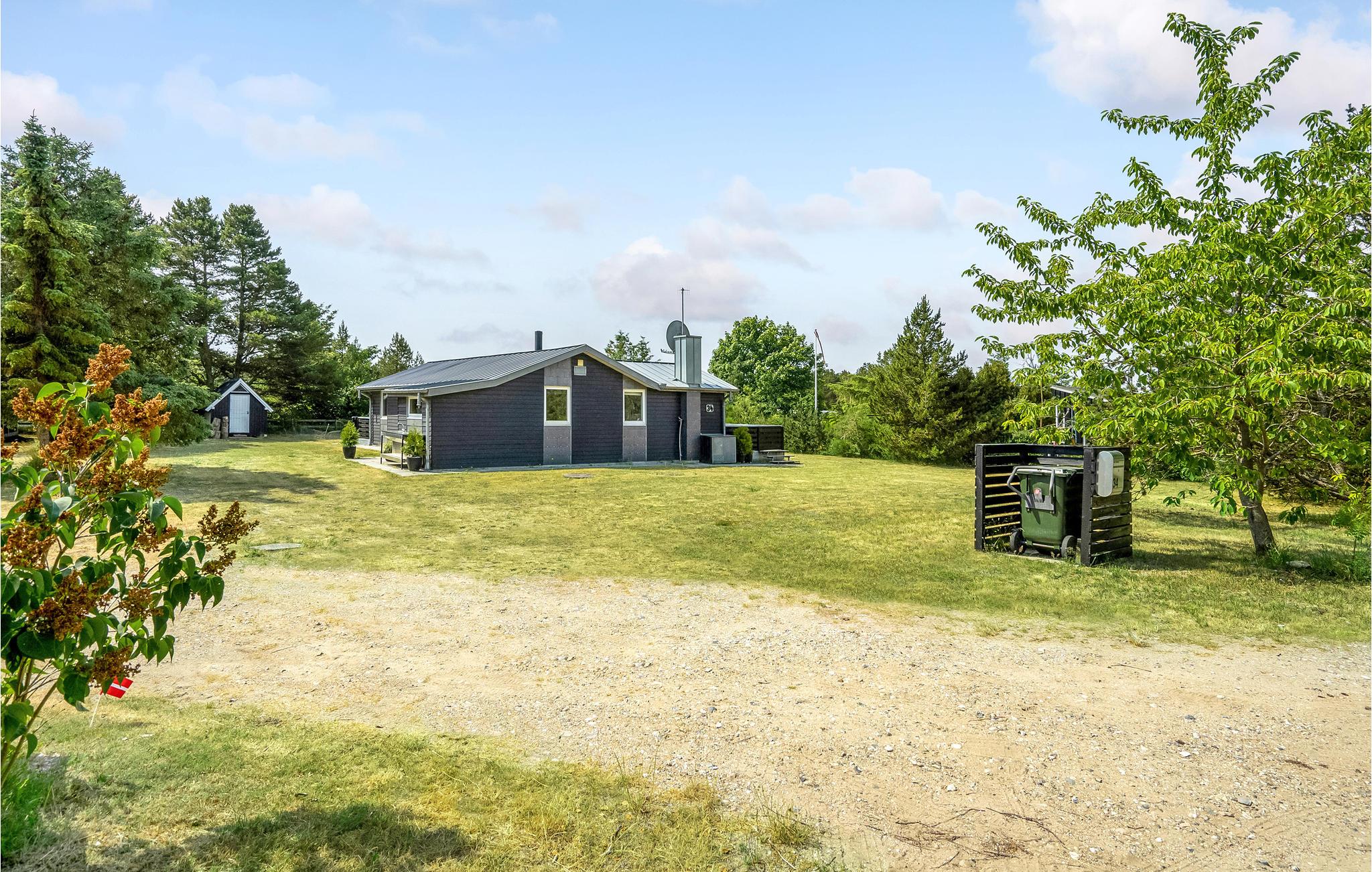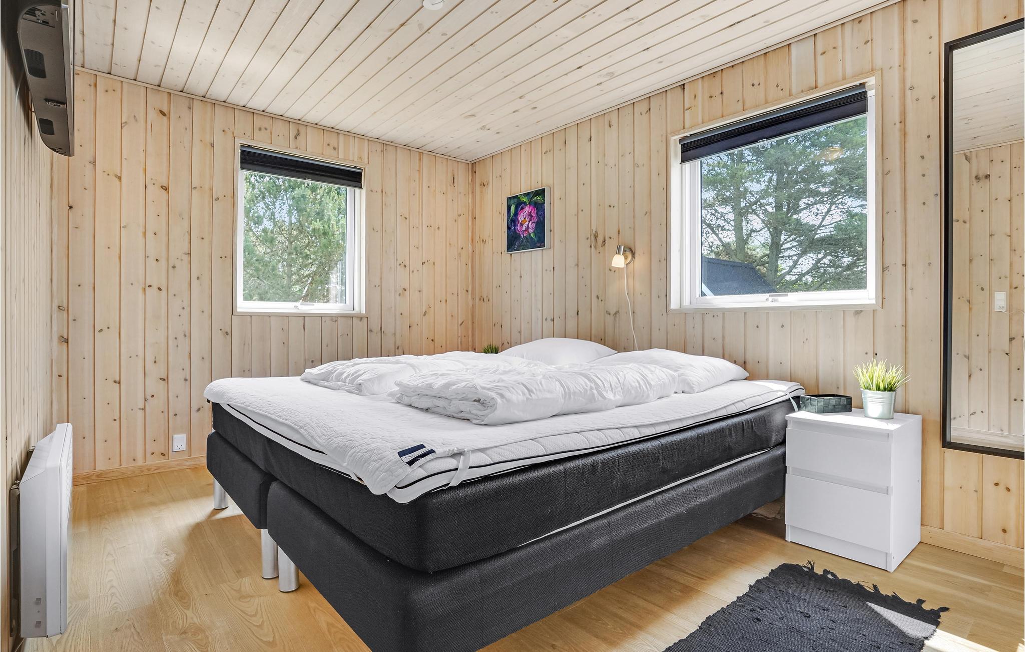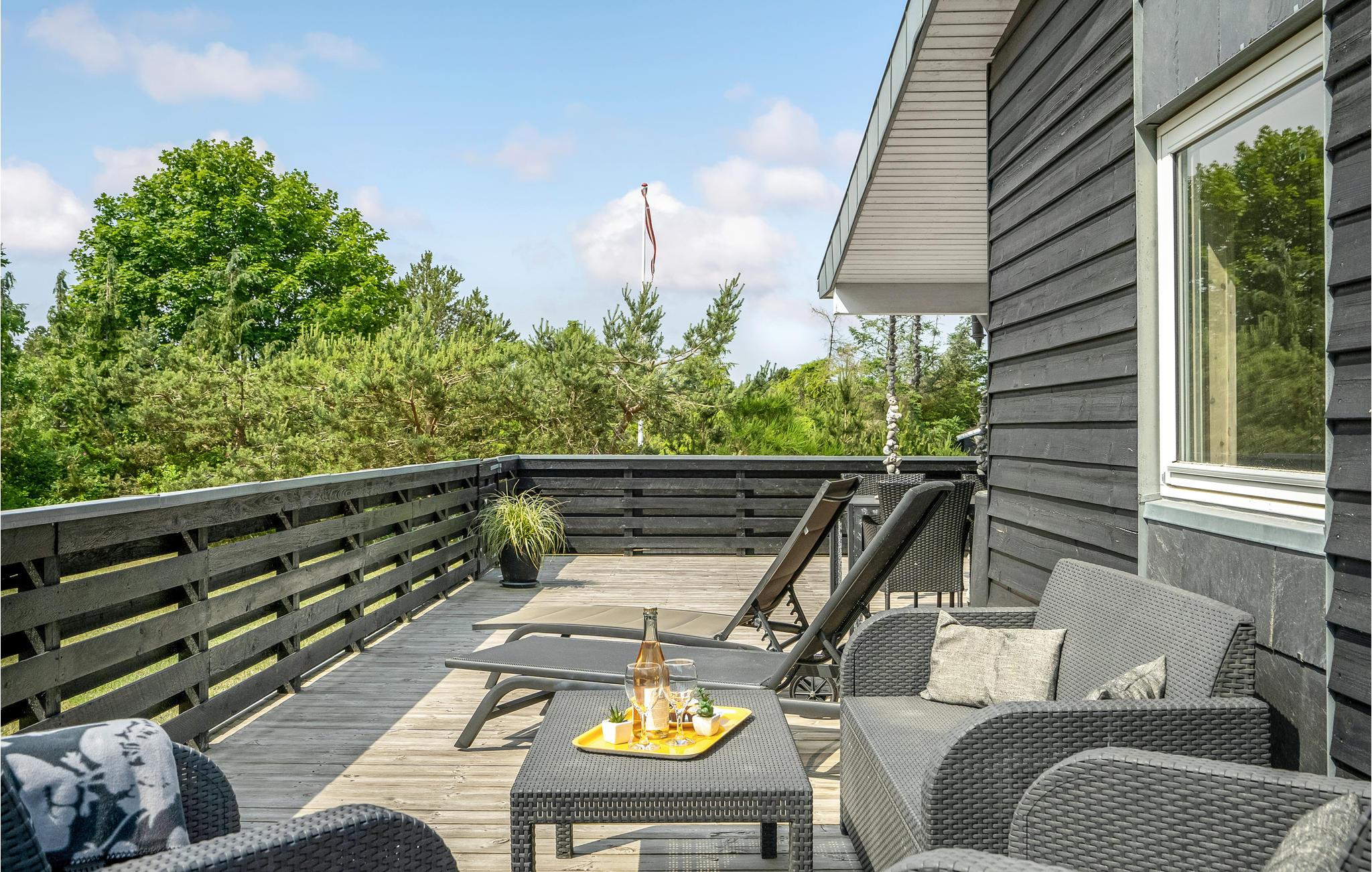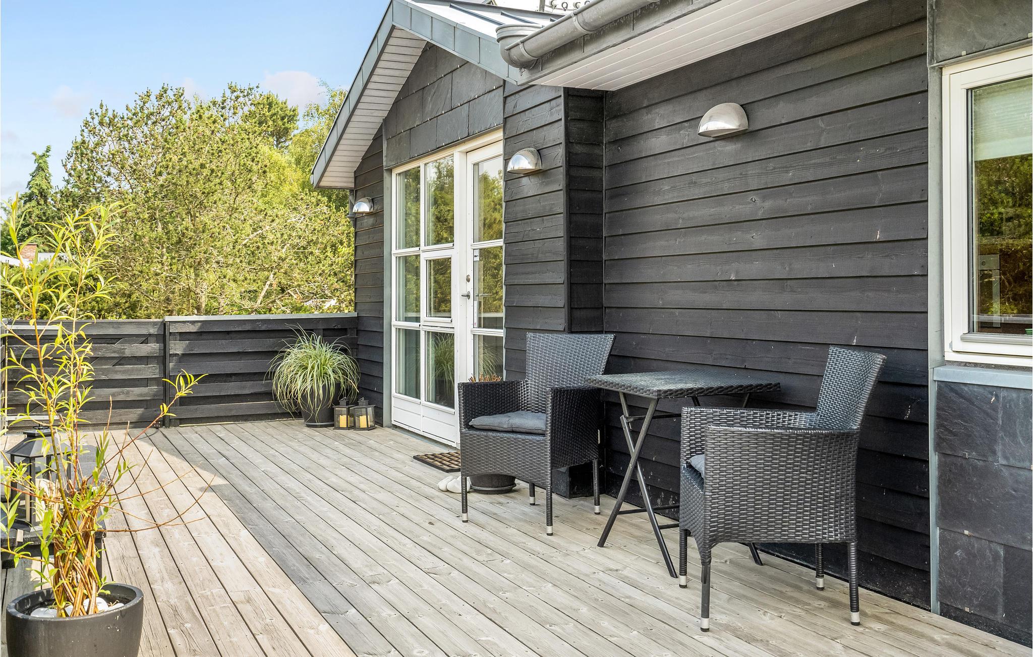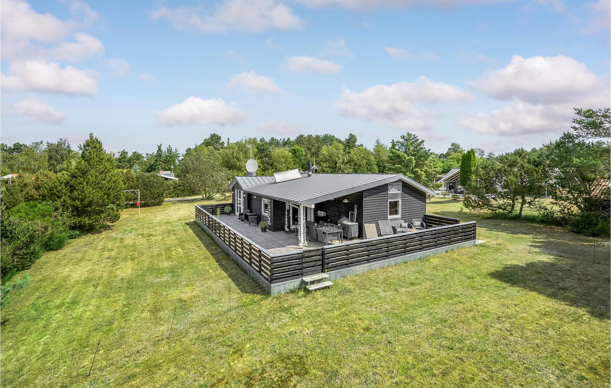 Moderne sommerhus tæt på Boeslum Strands strand med stor terrasse og sauna, perfekt til hyggelige ferier i naturskønne omgivelser.