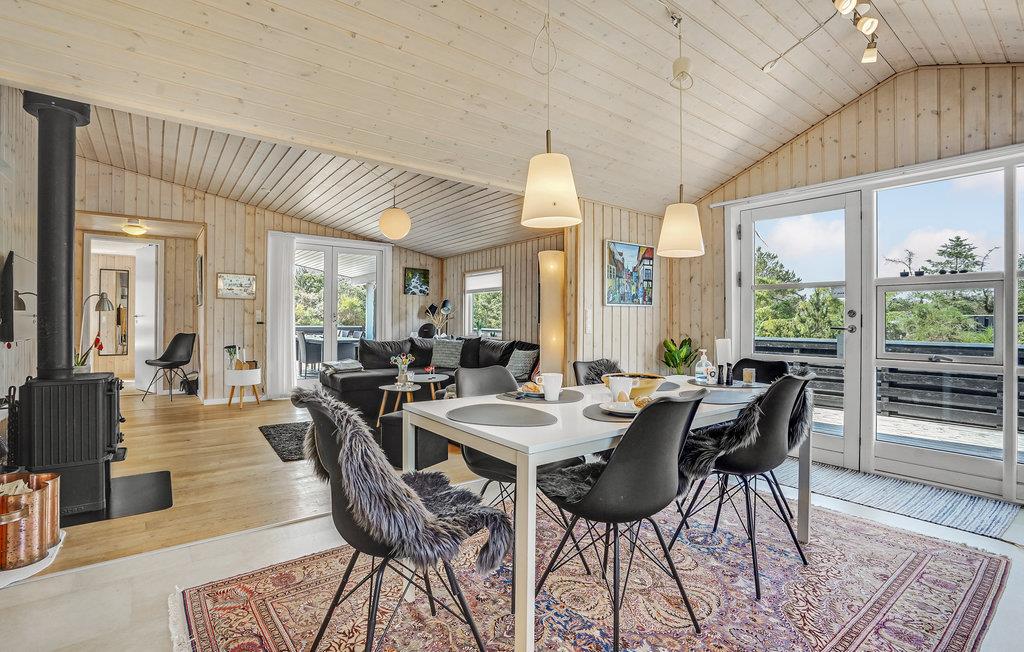 Huset er flot moderniseret og fremstår indbydende og lækkert. Rummene er gennemført indrettet med moderne møbler. Husets hjerte er det store køkken der er åbent mod stuen, hvor I kan tilbringe hyggelige timer sammen med spil, en god bog eller at se en film sammen.