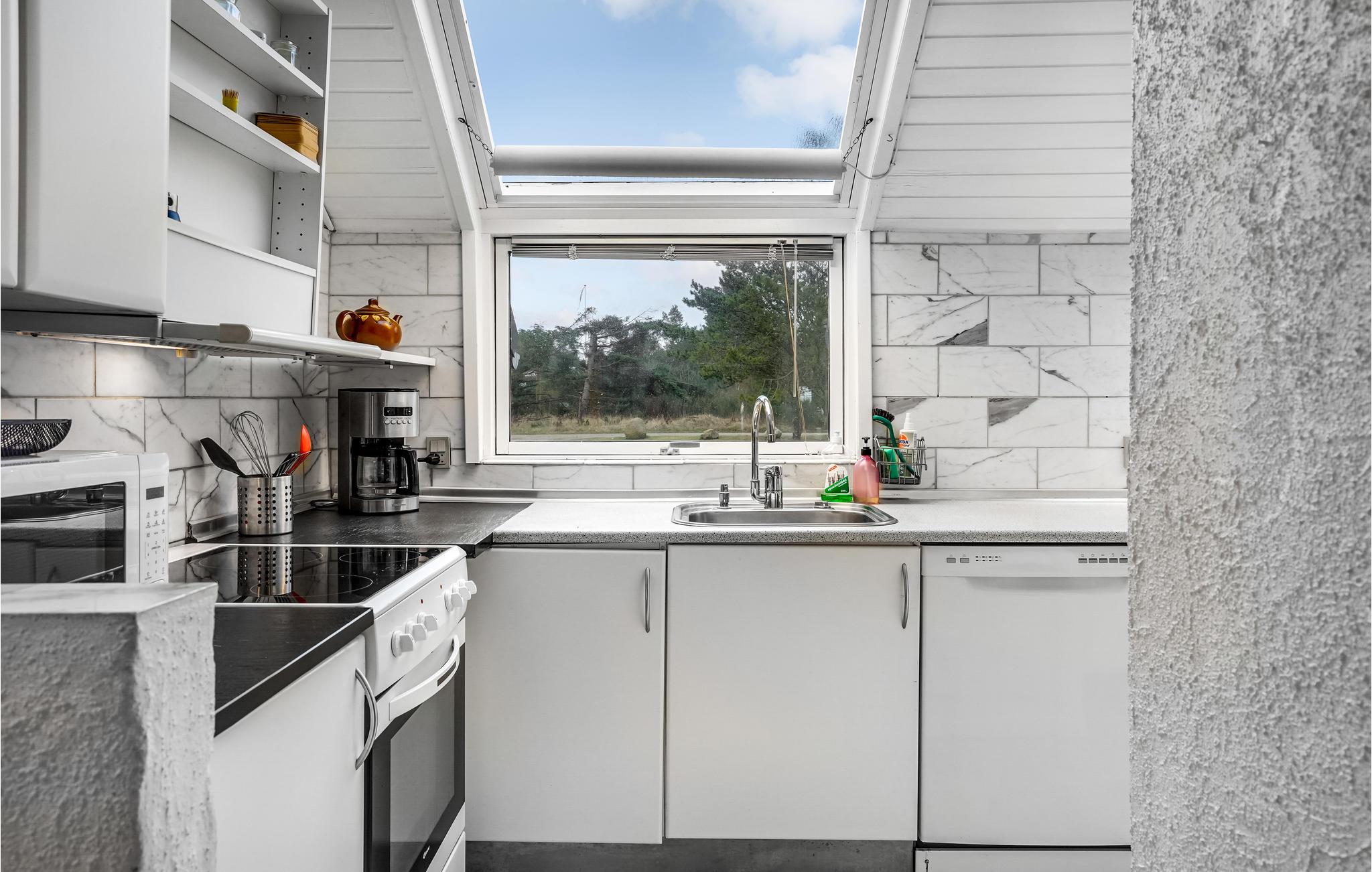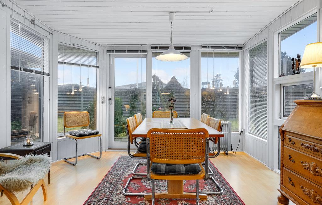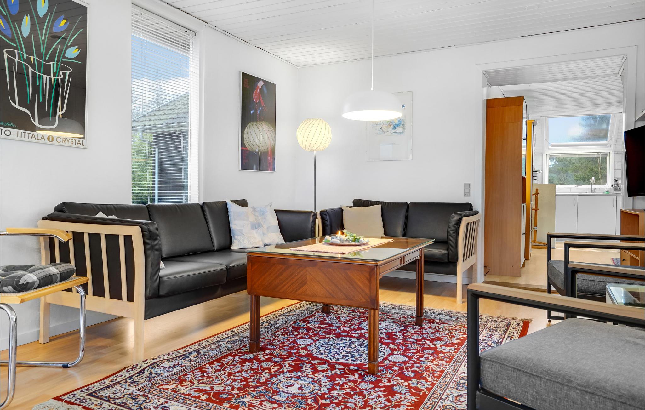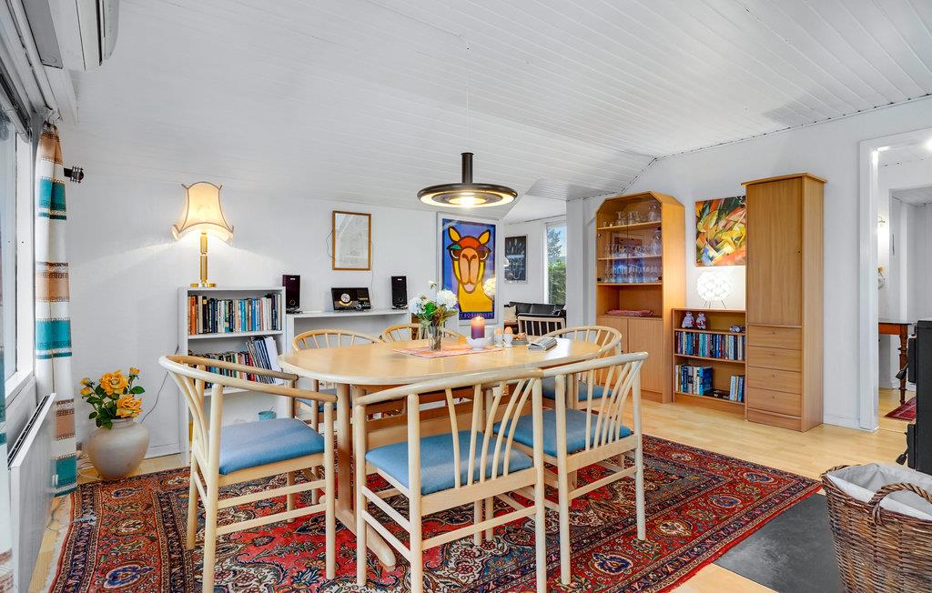 Velkommen til dette hyggelige feriehus, hvor I kan tage den udvidede familie eller en vennegruppe med og se frem til nogle herlige dage i fredelige omgivelser. Huset er kærligt og varmt indrettet, og køkken og stue er i et rum, så her kan alle pusle med deres gøremål, mens I stadig er i hinandens selskab. I stuen er der en dejlig brændeovn, og den er det ideelle sted at slappe af efter en begivenhedsrig feriedag sammen.