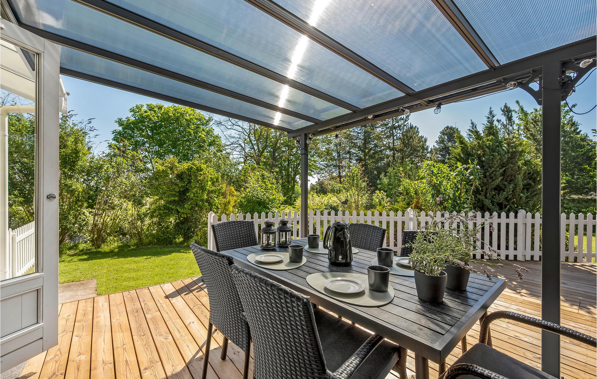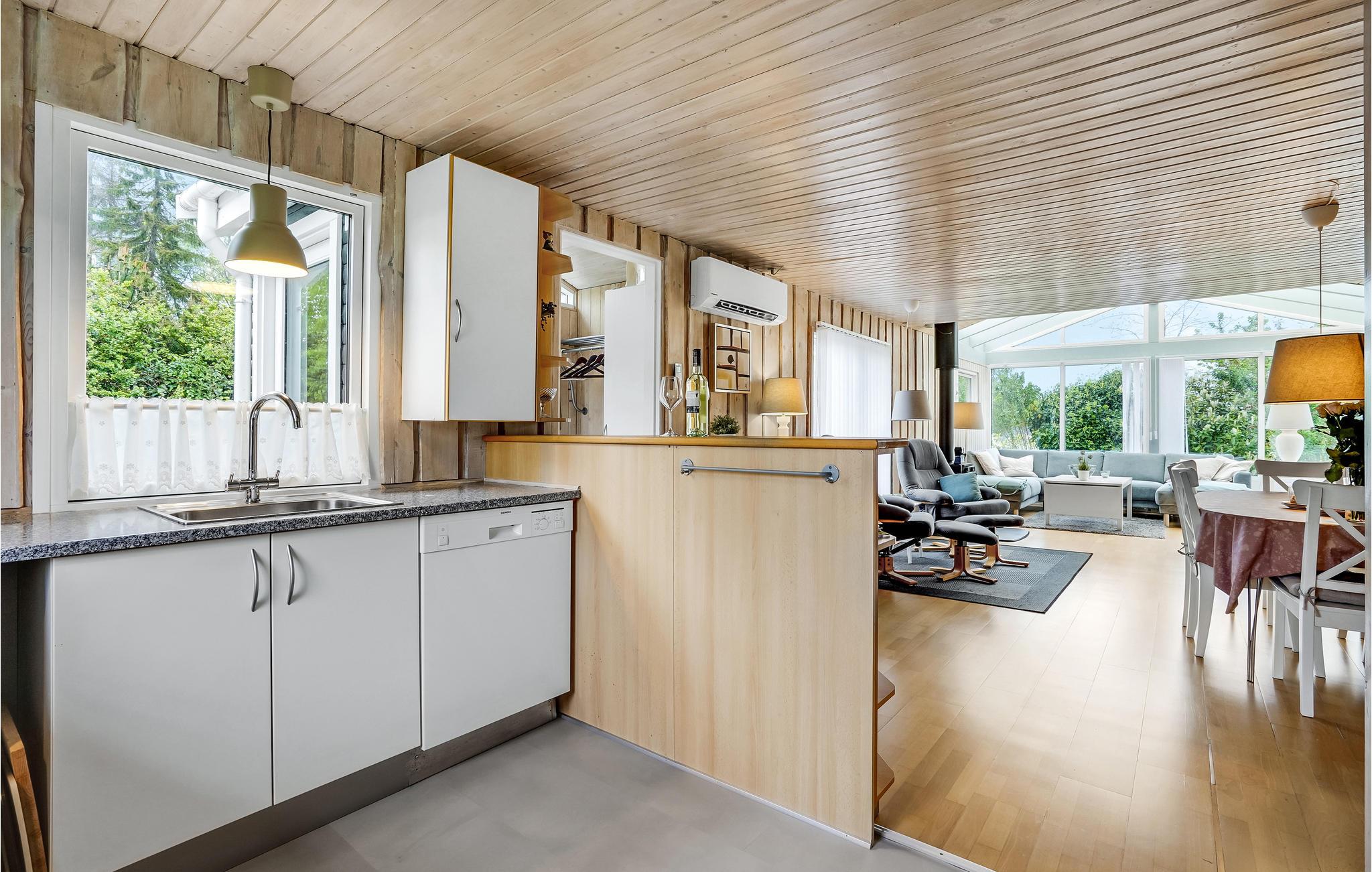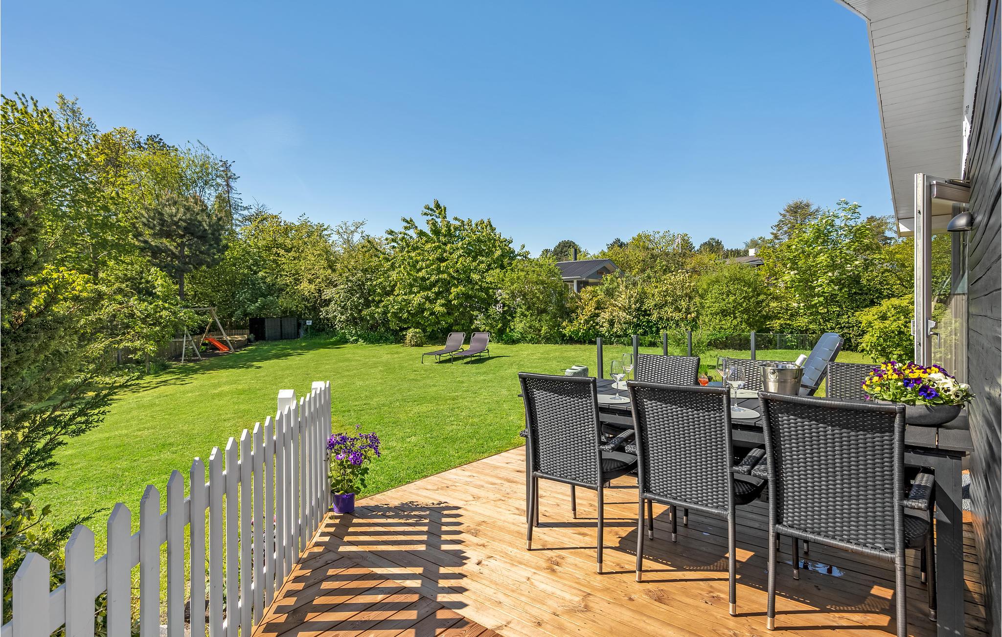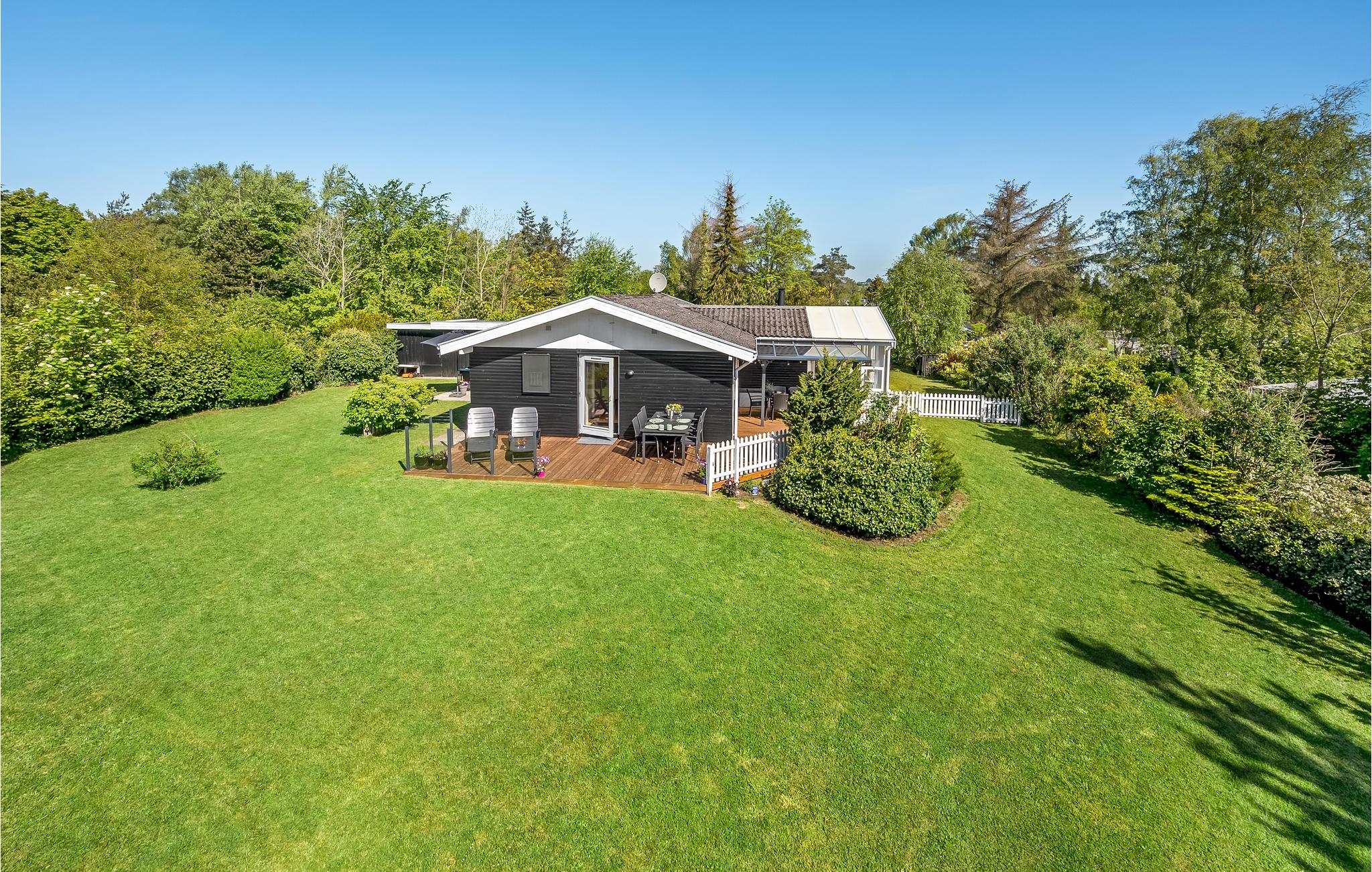 Hyggeligt sommerhus nær Ebeltoft med moderne køkken, store terrasser og opladning til elbil.
