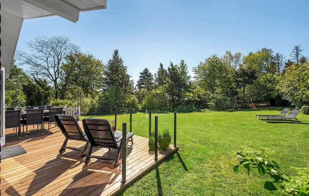 Fra stuen har I adgang til dejlige terrasseområder, hvor I tilberede lækre måltider på grillen. Nyd de lange sommeraftener med ekstra varme fra terrassevarmeren. Huset ligger på en stor naturgrund med græsarealer og et par høje træer, så der er masser af plads til boldspil. Hele familien kan se frem til hyggelige aktiviteter som kroket og kongespil.