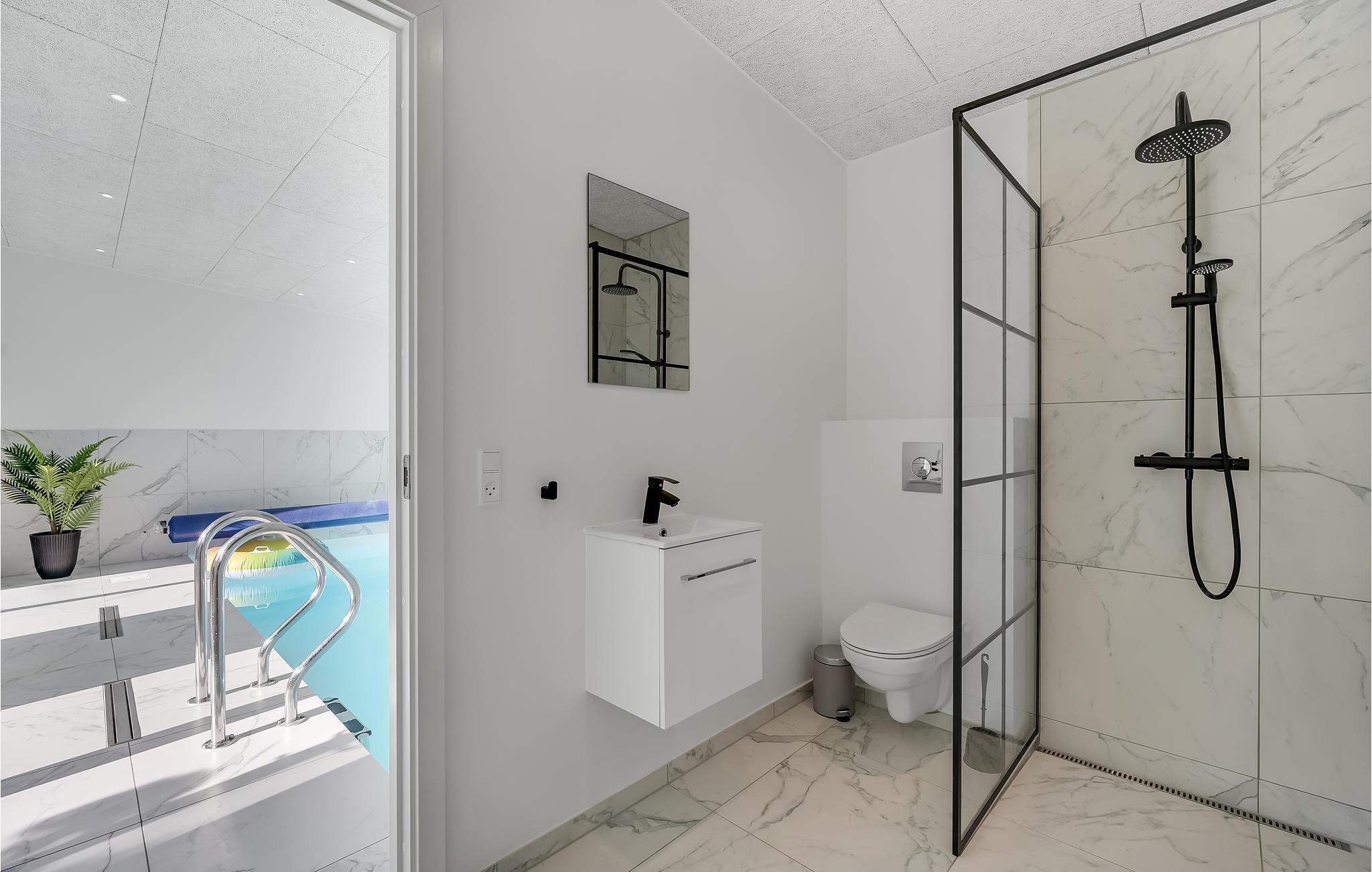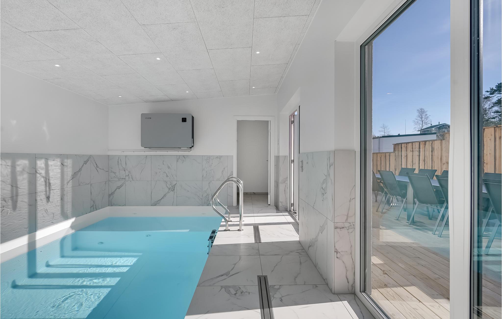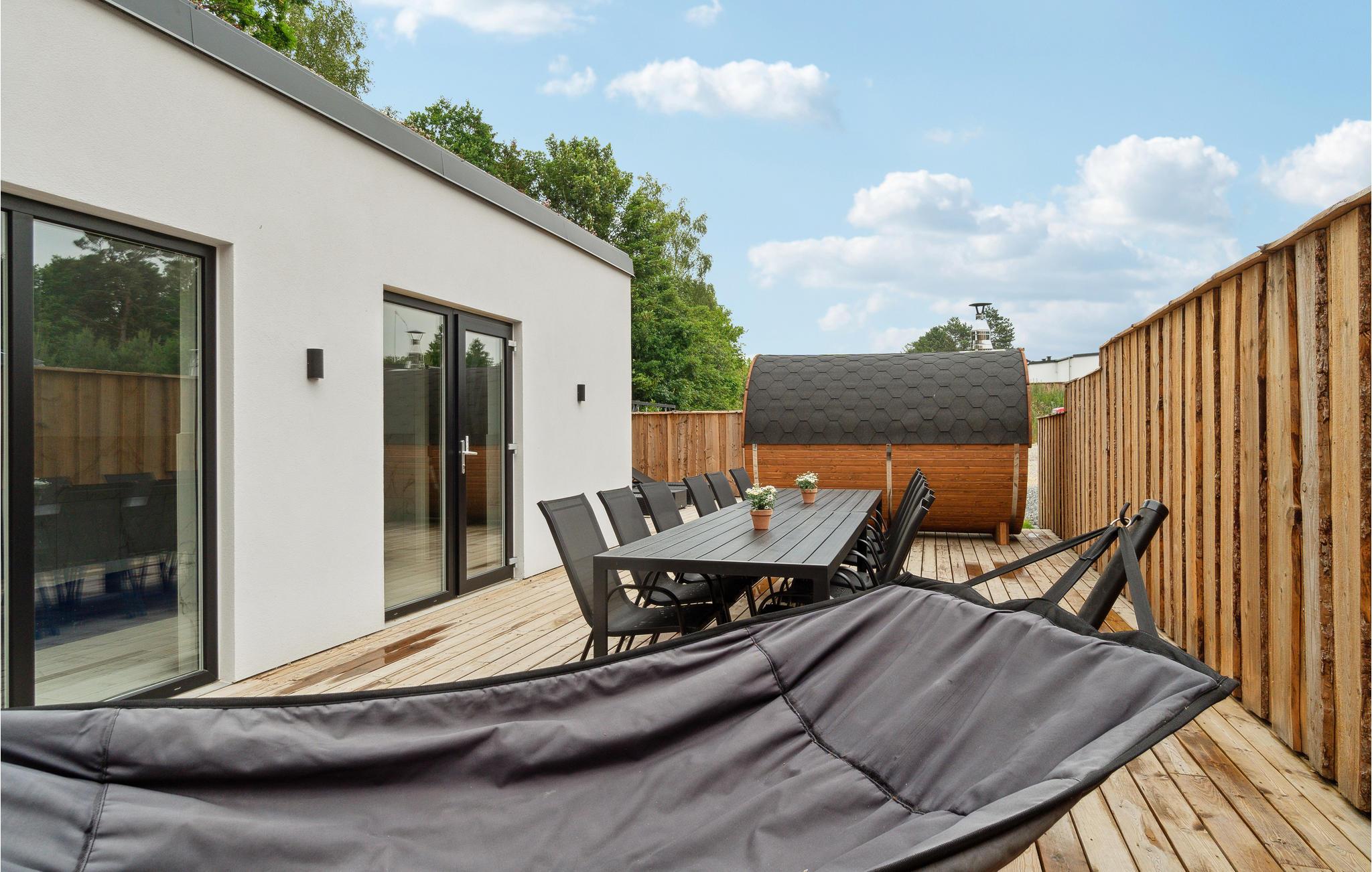 Det komfortable hus fordeler sig over to etager og en separat bygning, hvor der er et eksklusivt wellness-område med pool, spabad og sauna på en terrasse. I wellness-området kan I bade i poolen og derefter slappe af i det elegante spabad med plads til seks personer eller tage en sauna-session. I gåafstand fra huset ligger der desuden en stor fælles legeplads, hvor jeres børn kan blive venner med andre børn fra nabolaget.