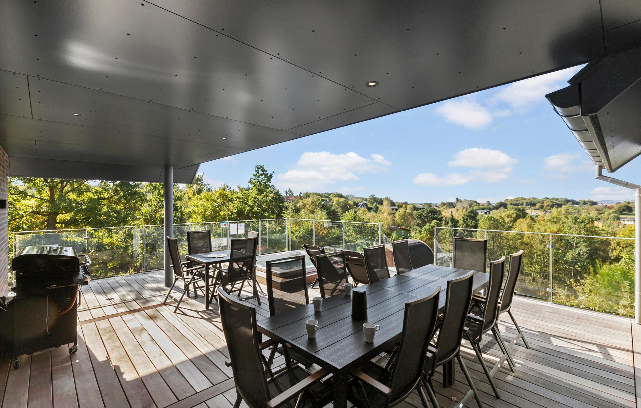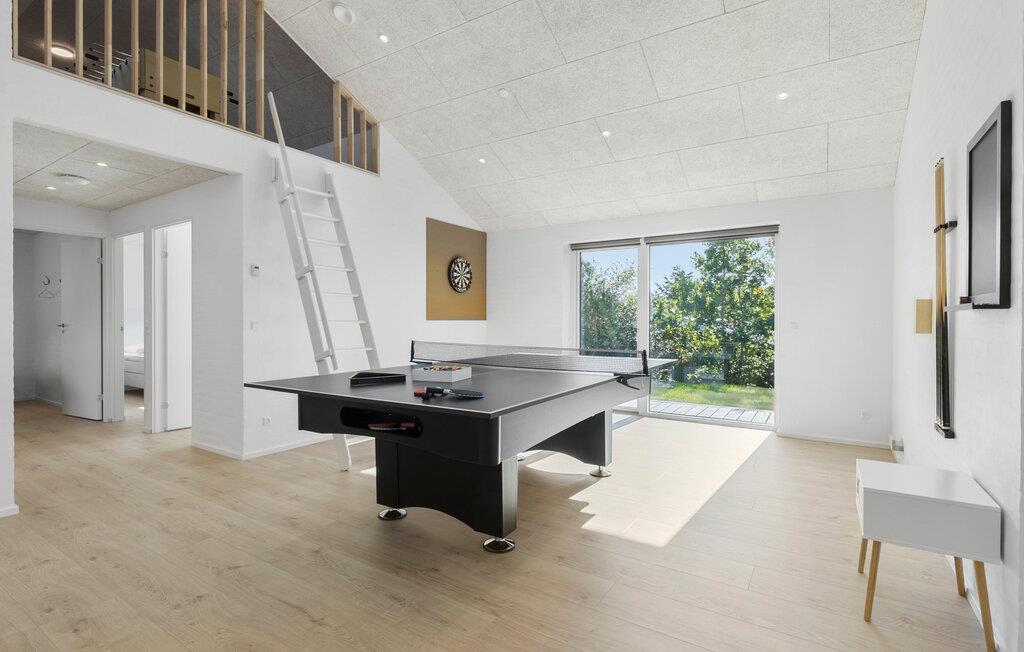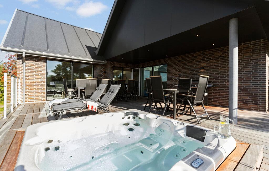 Jeres fantastiske hus i Boeslum Bakker med plads til to familier byder på afslapning, komfort og et væld af skønne ferieaktiviteter. Højdepunktet er husets mange wellnessmuligheder. På terrassen inviterer den hyggelige saunatønde til afslappende saunature, og bagefter kan I tage en dukkert i det boblende udendørs spabad. Herfra kan I også se havets blå glimt i horisonten. Eller nyd en sjov stund med hele familien i husets indendørspool. I kan også glæde jer til både et poolbord og et bordtennisbord. De mindste gæster finder en gynge og en sandkasse i haven.