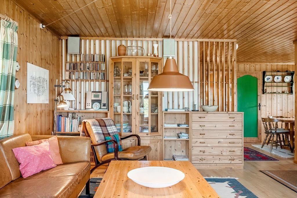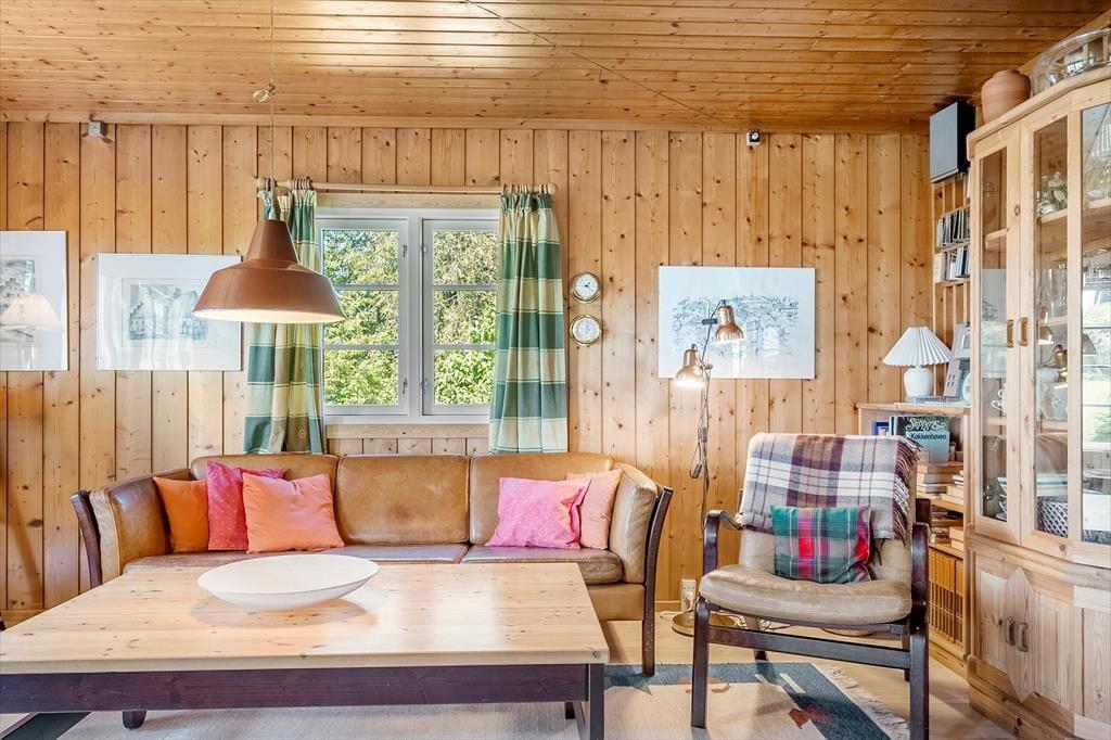 For enden af vejen, finder I et fint træsommerhus med skodder og overdækket terrasse, som indbyder til en dejlig ferie i rolige omgivelser.