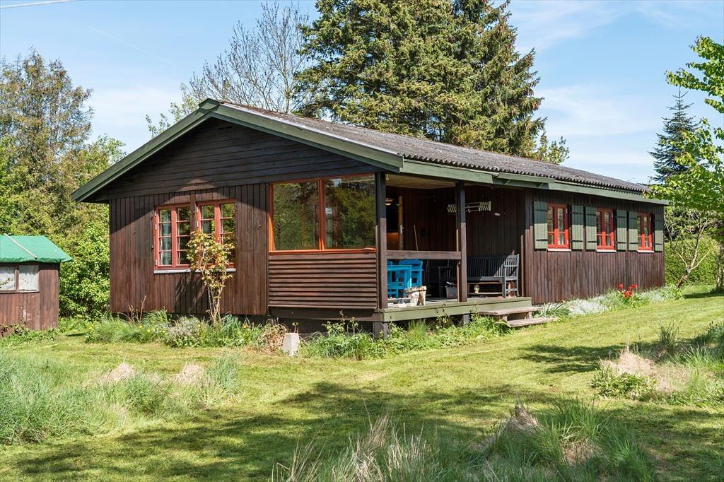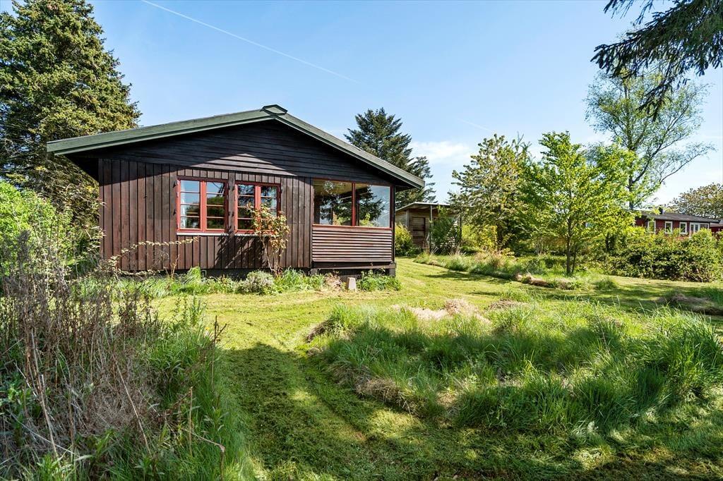 Sommerhuset er omkranset af en dejlig naturgrund/have (delvist 'vild med vilje'). Fra stuen er der udgang til en dejlig overdækket terrasse, her kan i sidde og måske tage et spil kort eller nyde et glas vin og tale om dagens oplevelser. Om aftenen når duggen falder kan I sidde under overdækningen og nyde stilheden og roen. Fra huset er der 800 meter til kysten og 1300 meter til indkøb, samt gode turmuligheder i den dejlige Østerskov 2 km væk.