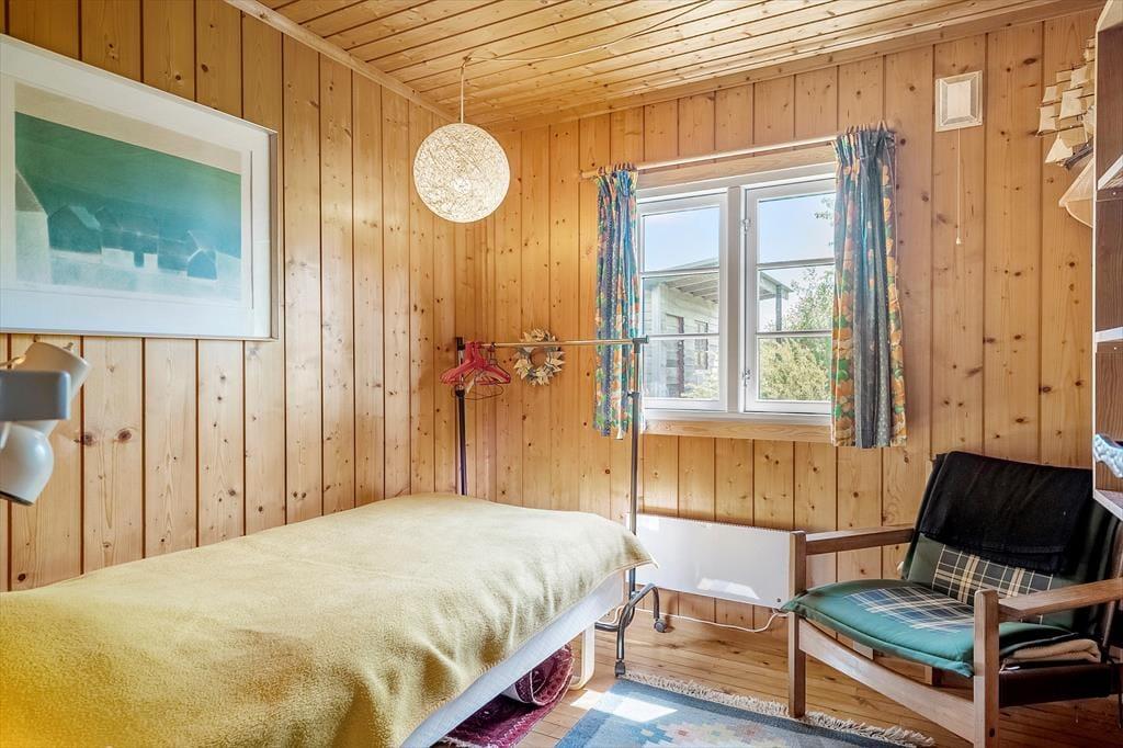 Her kan I lade roen sænke sig og I kan alle nyde ferien i de hyggelige og indbydende rum. Her er plads til 4 voksne og huset har et køkken med åben forbindelse til stuen, som er indrettet med en god spiseplads og sofagruppe samt TV og varmepumpe. Fra stuen er der udsigt til den gamle mølle på Bogø. I køkkenet kan I tilberede dagens måltider og nyde dem på den hyggelige overdækkede terrasse udenfor. Der er 3 værelser, 1 med en dobbeltseng og 2 med en enkeltseng. Her kan man trække sig tilbage og tage en lur eller læse en god bog. Sommerhuset har et godt og funktionelt badeværelse med toilet, håndvask og bruseniche, samt topbetjent vaskemaskine.