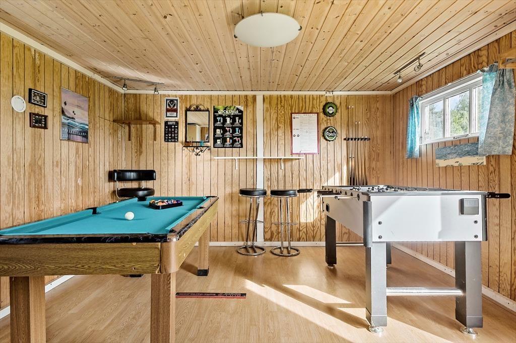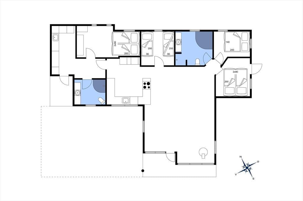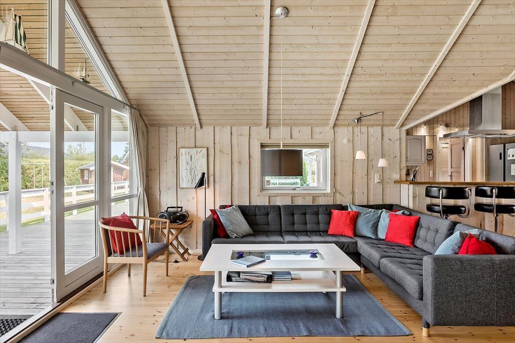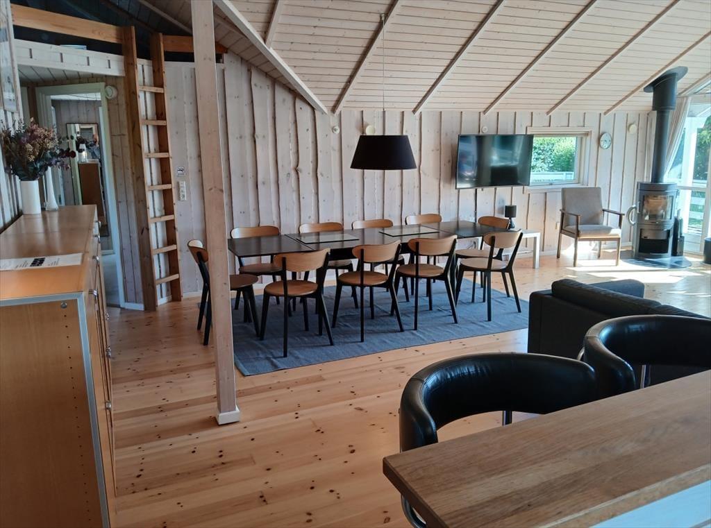 Her kan I lade roen sænke sig og nyde ferien i de lyse og indbydende rum, med en rigtig god planløsning. I det åbne køkken kan I skiftes til at lave mad, imens resten af familien er bænket ved spisebordet til et brætspil. Måske I kan nyde en kølig drik, imens I taler om dagens oplevelser. Du kan også bare nyde udsigten til haven fra de store vinduer i stuen og hvile ørerne, imens børnene hygger sig på hemsen eller foran TV’et. Med 4 gode soveværelser, kan teenagerne trække sig tilbage og lukke døren, eller der er plads til, at du tager en lur. Huset har 2 fine badeværelser, hvor det ene har en spa til 2 personer. Her er også et bryggers med god plads til tøjvask. I aktivitetsrummet kan I samles og spille bl.a. bordfodbold og dart.