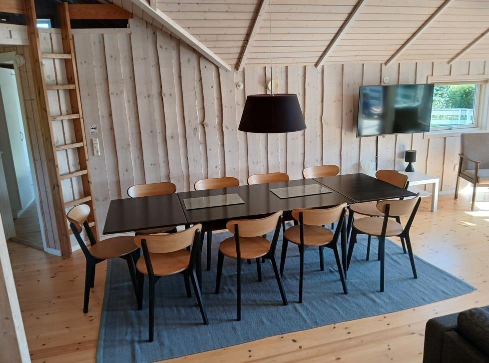 Sommerhuset er omkranset af en dejlig have med masser af gode legeredskaber til ungerne. Fra stuen er der udgang til en dejlig stor terrasse, hvor I kan nyde de solrige dage og stjernehimlen når det bliver mørkt.