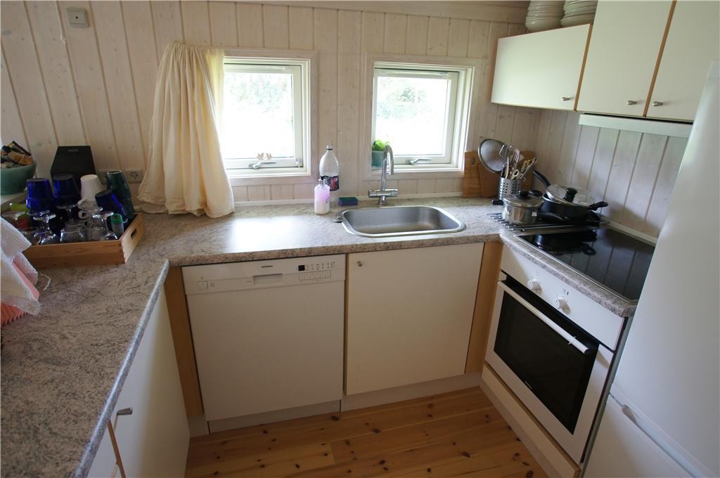 I køkkenet er der køleskab med lille fryseboks, opvaskemaskine, kogeplader, emhætte samt bageovn.