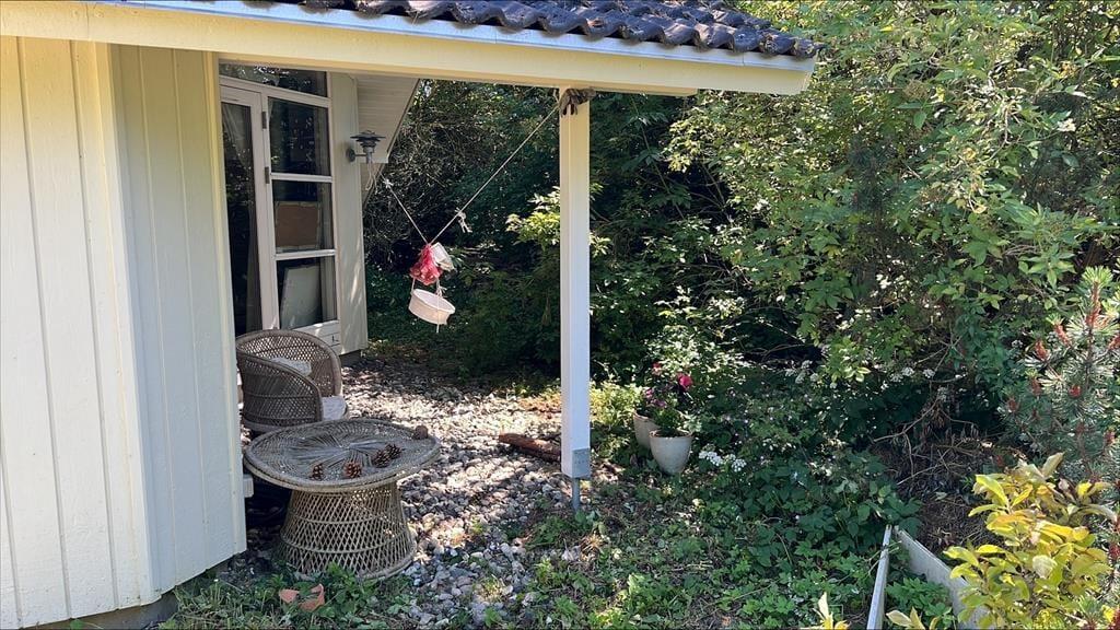 Huset ligger i et fredeligt sommerhuskvarter. Der er en lille skov kun ca. 20 minutters gang fra huset og samme afstand til den lokale Købmand.