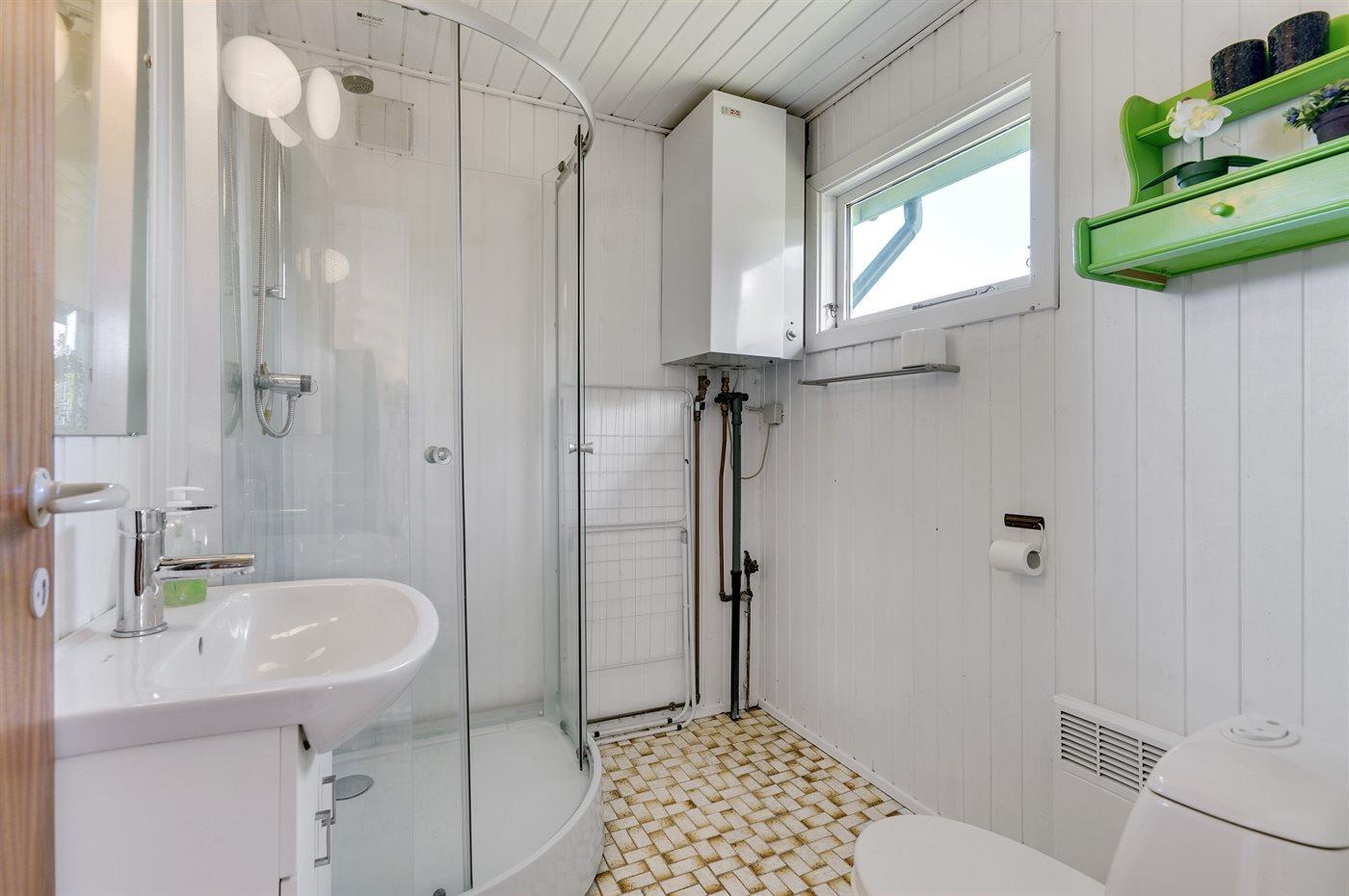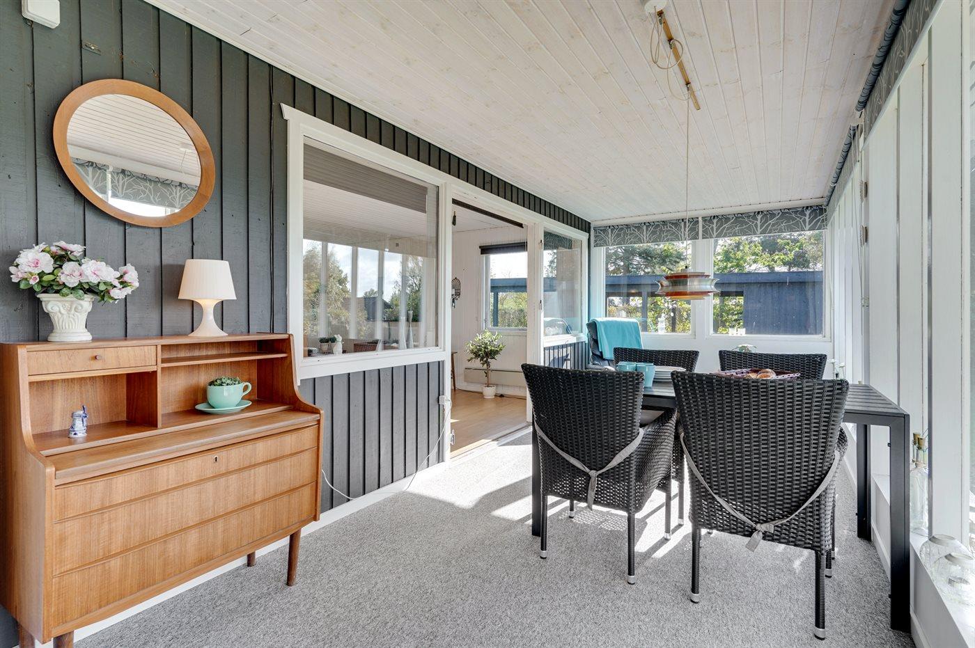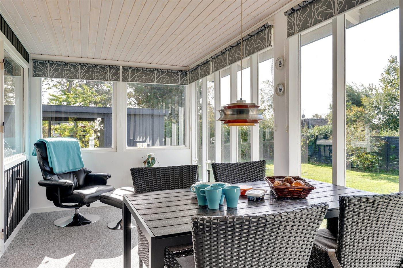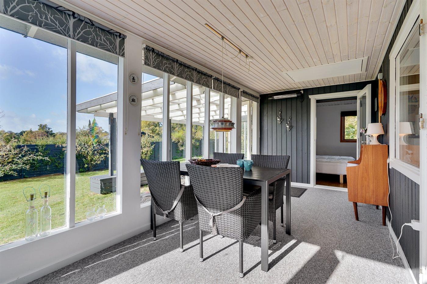 Ferieboligen er beliggende på en 800 m² stor havegrund. Grunden er indhegnet. Der er 1000 m til havet. Nærmeste forretning er beliggende i en afstand af 900 m. Til ferieboligen hører åbent terrasseareal. Desuden er der overdækket terrasse. Bålsted. Grill til rådighed. Der er carport til rådighed. Parkering ved ferieboligen.