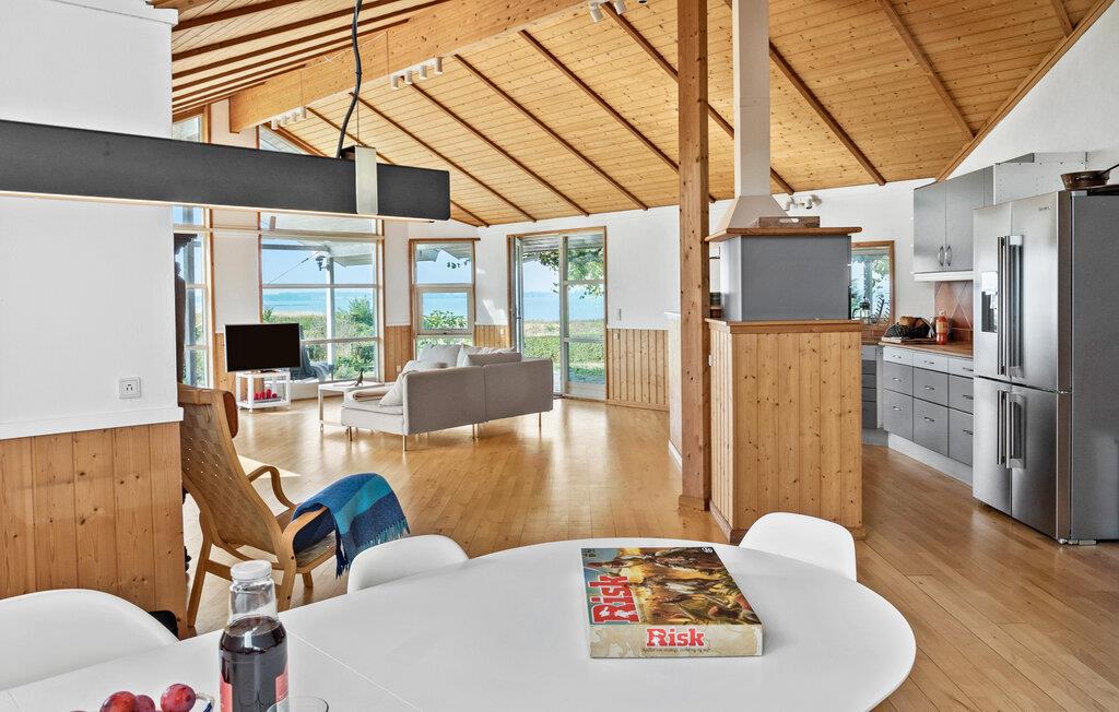Hvis I er på udkig efter en dejlig base for årets ferie med den store familie, er dette indbydende træhus på Bogø det helt rette valg. Huset byder på mange kvadratmeter og en nydelig indretning med loft til kip, træpaneler og store vinduespartier, der giver et godt lysindfald og udsigt til omgivelserne og vandet. Lav en masse god mad i det veludstyrede køkken og nyd måltiderne ved spisebordet, inden I hiver brætspillene frem eller runder dagen af med en hyggelig filmaften. Måske børnene skal bygge huler og sove på hemsen?