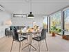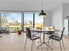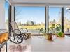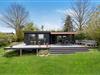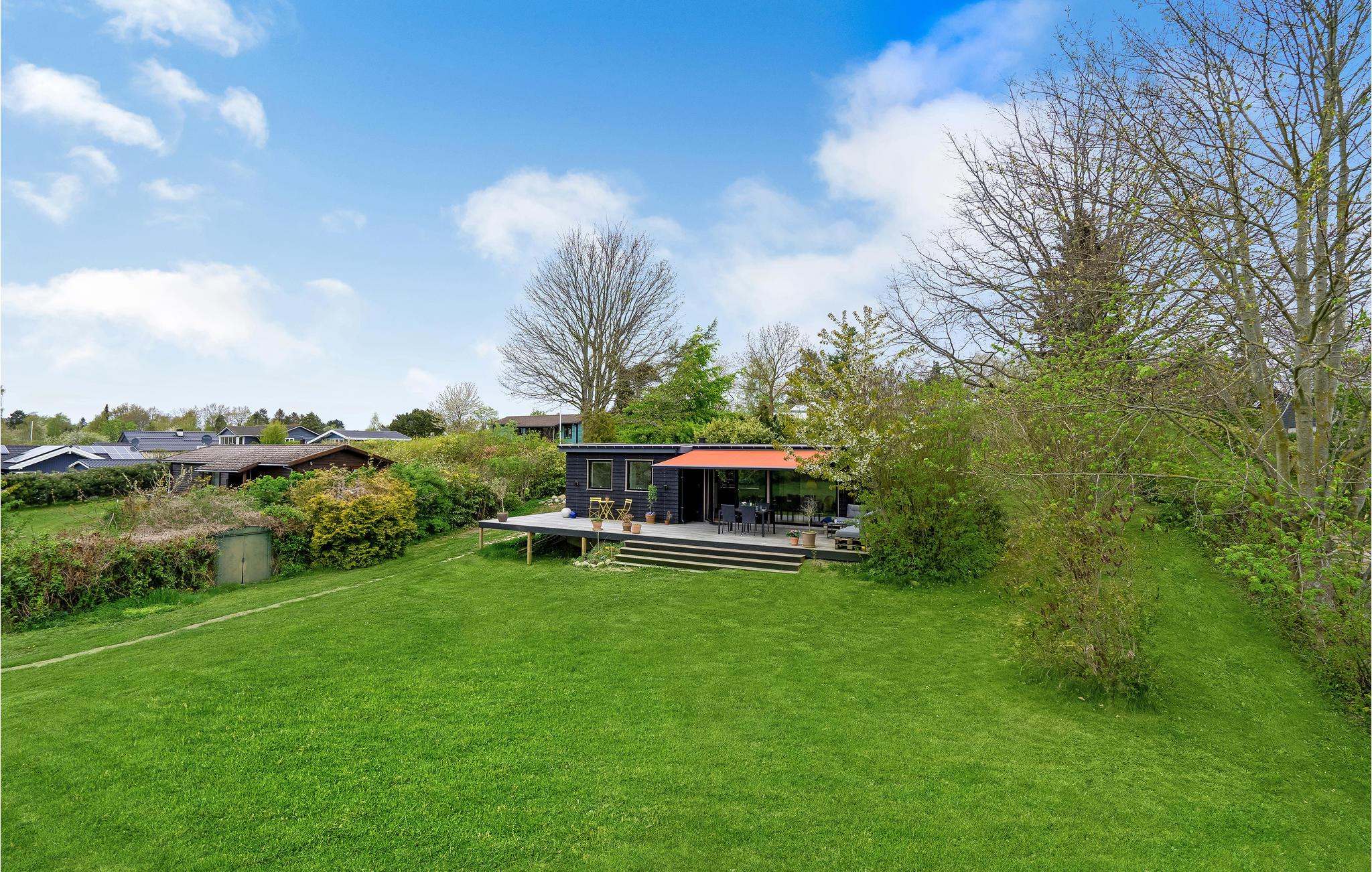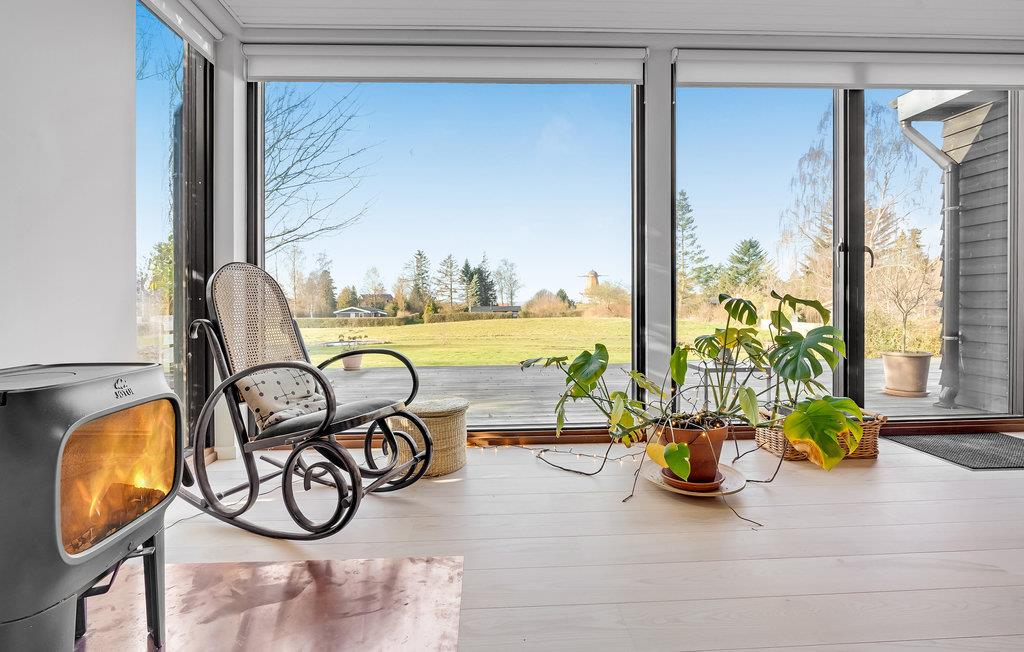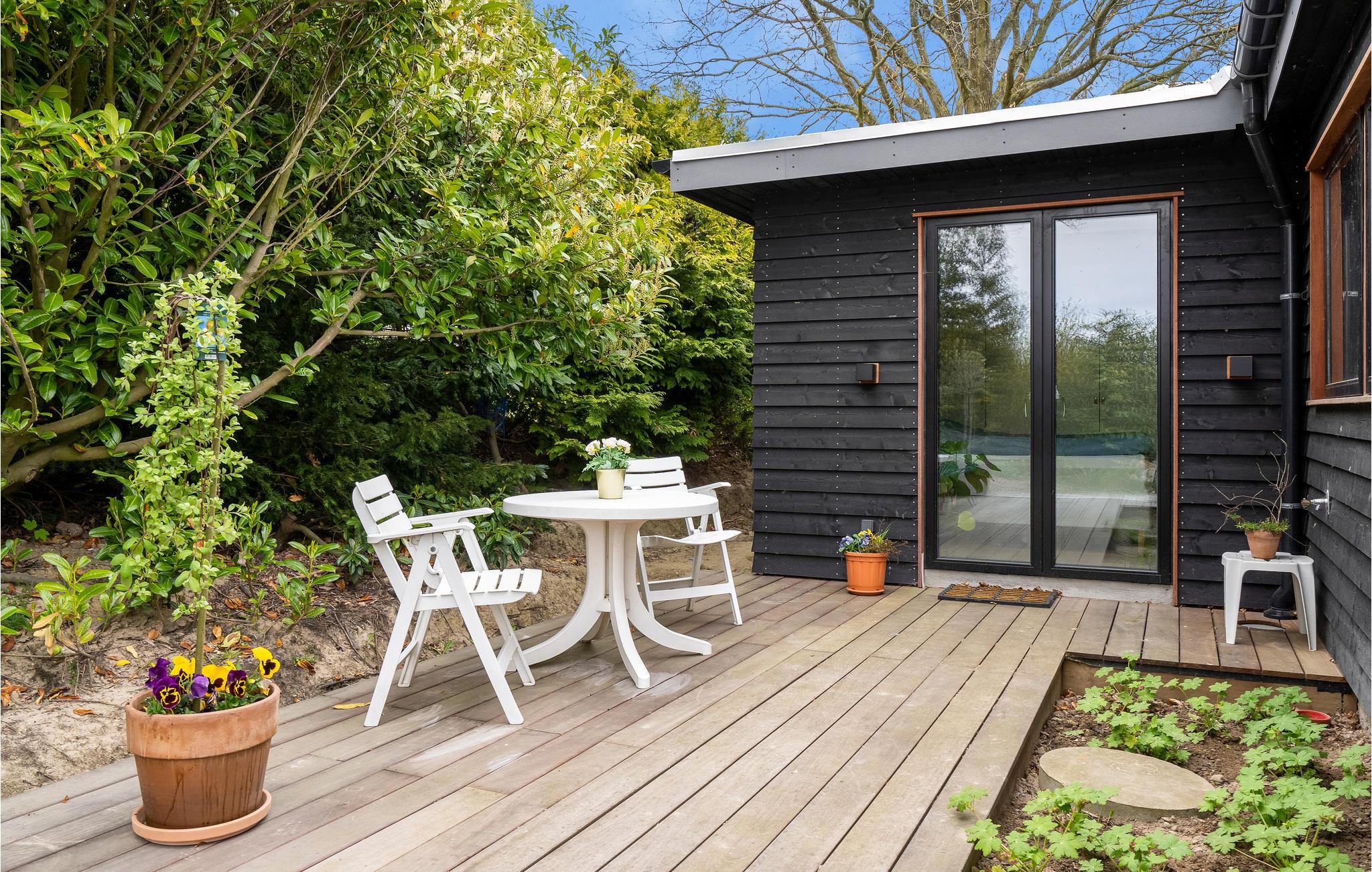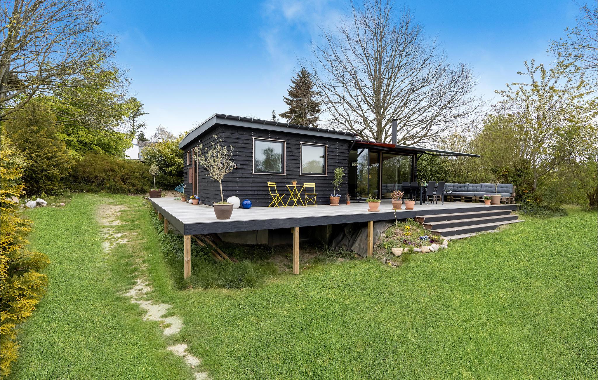 Moderne sommerhus på Bogø med udsigt til vandet og Bogø Mølle, tæt på havn, badebroer og naturoplevelser.