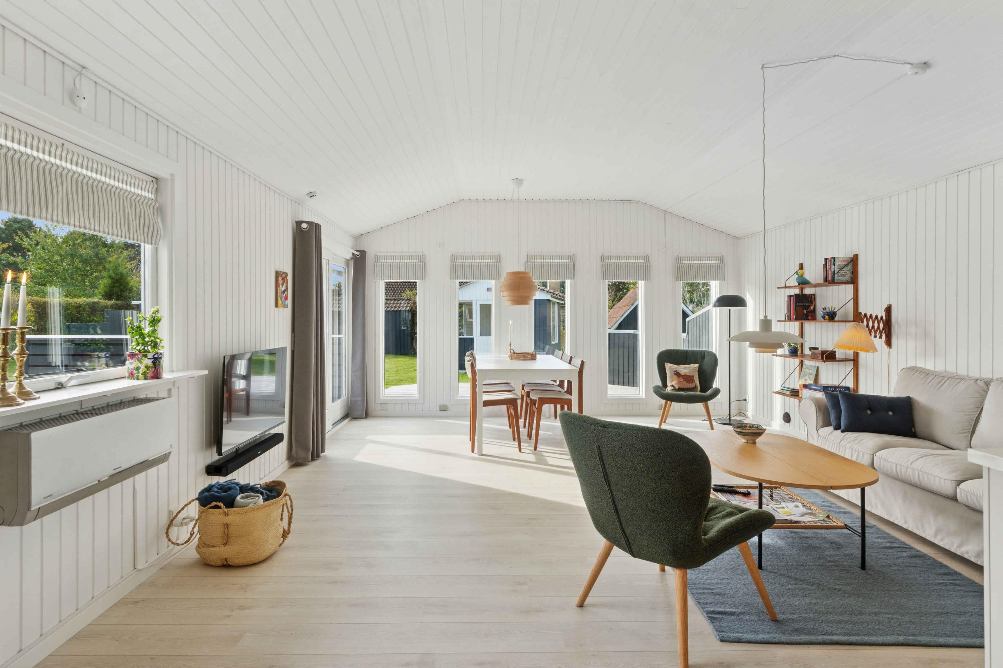 Huset byder på 102 m² helårskomfort og et separat, isoleret anneks på 12 m². Her finder du tre soveværelser med dobbeltsenge, hvoraf det ene ligger i annekset tæt ved huset. En tremmeseng, weekendseng og Trip Trap-stol gør det let for børnefamilier. Stuen samler familien med TV, varme fra pilleovn eller varmepumpe og direkte adgang til haven. Badeværelset har gulvvarme, og et ekstra gæstetoilet rummer vaskemaskine. Udendørs er der plads til leg og samvær. Haven rummer legehus, legetøj, krocket, kongespil og fodboldmål. Derudover er der gasgrill, havemøbler og et hyggeligt bålsted. Området omkring boligen er ideelt til en afslappet ferie. Bogø er kendt for sit rolige tempo, smukke natur og korte afstand til vandet. Øen indbyder til gå- og cykelture gennem marklandskaber, små skove og langs kysten, hvor udsigterne skifter med lyset. Herfra er det nemt at opleve Møns seværdigheder, fx Møns Klint, Dark Sky-områderne og de charmerende havnemiljøer på både Bogø og Møn. Kombinationen af natur, lokal stemning og gode aktivitetsmuligheder gør området særligt attraktivt for både børnefamilier og par. Nærmiljøet tilbyder også gode muligheder for lystfiskeri, fuglekiggeri og rolige stranddage. De små færgeforbindelser og korte køreture til lokale spisesteder giver ekstra ferieliv. Alt i alt får du et funktionelt, indbydende og veludstyret helårshus i et område, der gør det let at koble helt af – uanset årstid.