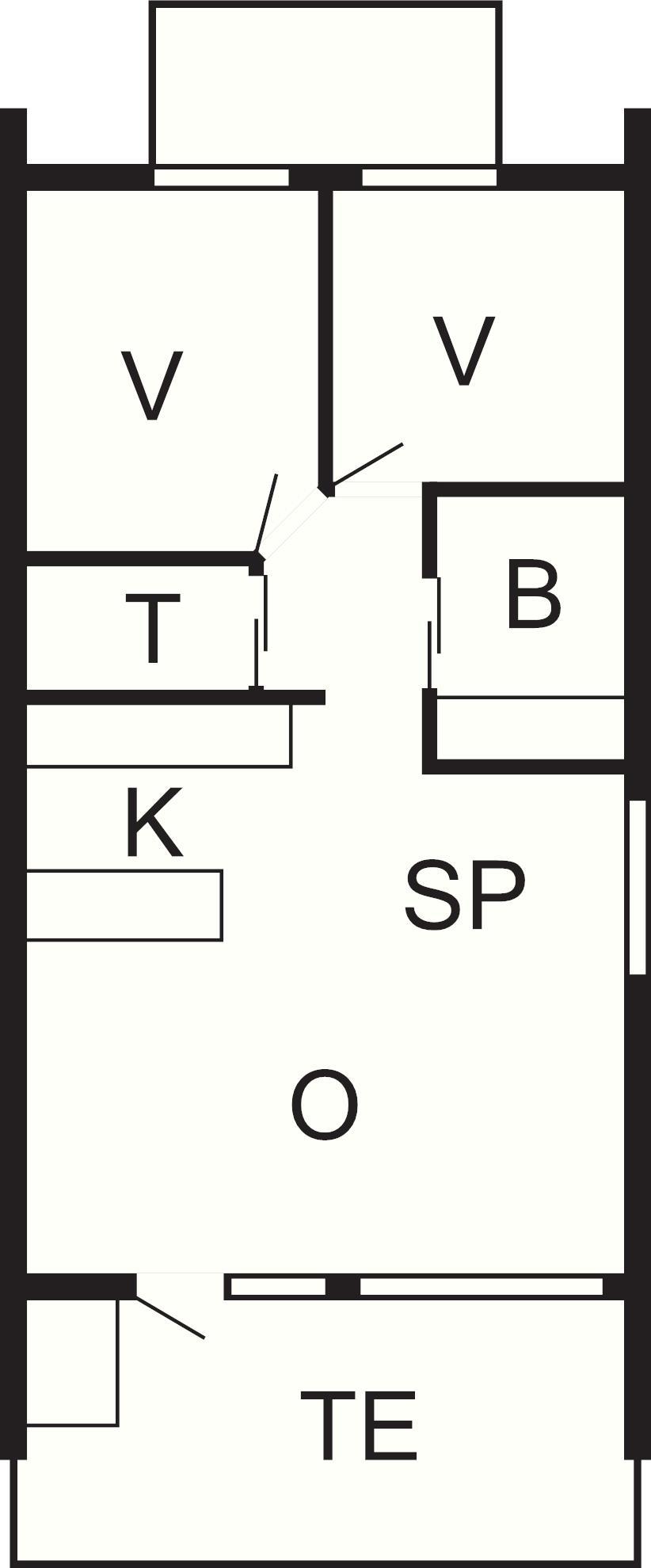2 Soveværelser: (1DS)+(2O), barneseng