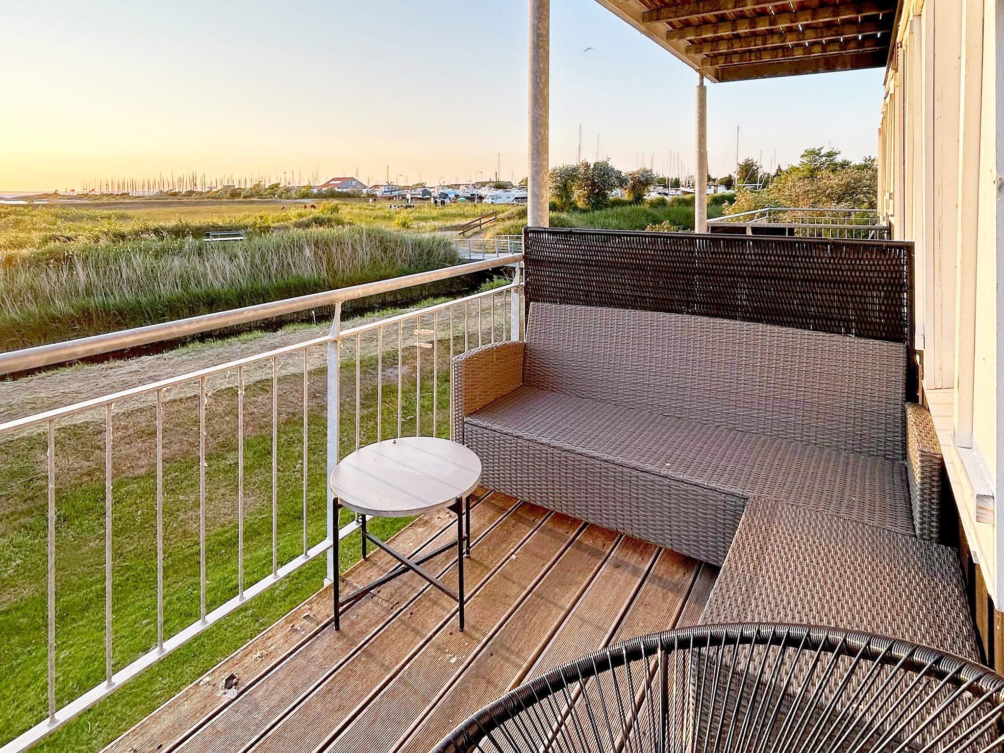 Lejligheden har et åbent køkken med direkte adgang til en stor balkon med en fantastisk havudsigt. Stueetagen indeholder et soveværelse med dobbeltseng og et badeværelse udstyret med spabad og sauna, hvilket giver et perfekt tilflugtssted for afslapning.