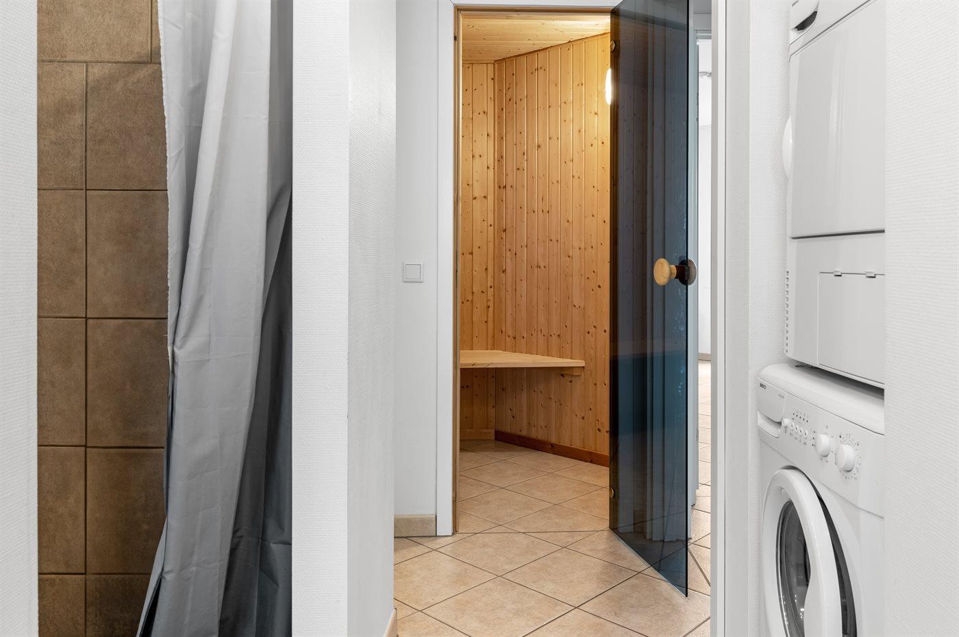 Der er 2 badeværelser og 2 toiletter. Der er gulvvarme på 2 badeværelser. I saunaen er der mulighed for afslapning.
