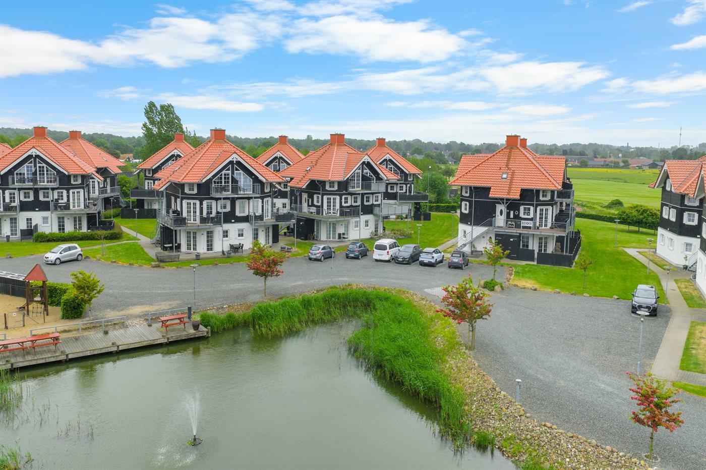Tæt på lejligheden ligger den fælles legeplads og både badestrand, marinaen, indkøb og Bogense by ligger i kort gåafstand.