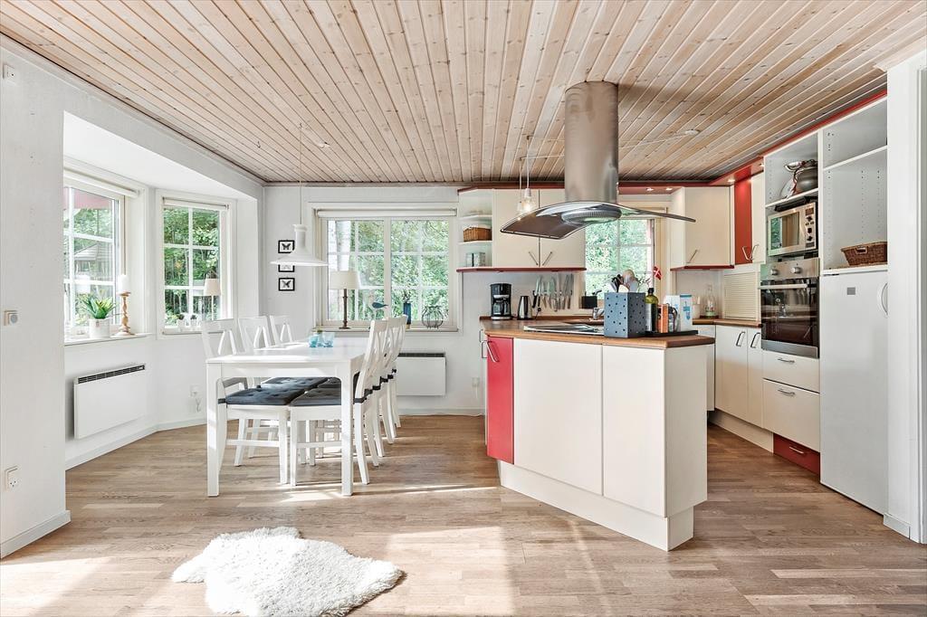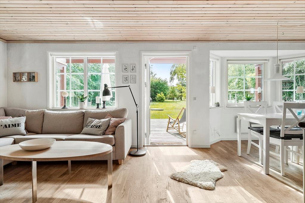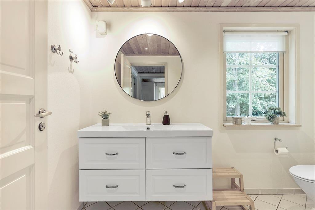 Sommerhuset er omgivet af en skøn terrasse, hvor du kan nyde solens stråler fra morgen til aften. Havemøblerne indbyder til hyggelige måltider under åben himmel, og grillen står klar til at tilberede en lækker middag, mens duften af mad blander sig med skovens friske dufte. Haven er en oase i sig selv, hvor du kan høre fuglene synge og måske være heldig at få et glimt af skovens dyr, der kigger forbi. En sti fører dig fra haven gennem skoven og ned til stranden, hvor du kan tage en forfriskende dukkert eller blot nyde synet af bølgerne, der blidt slår mod kysten.