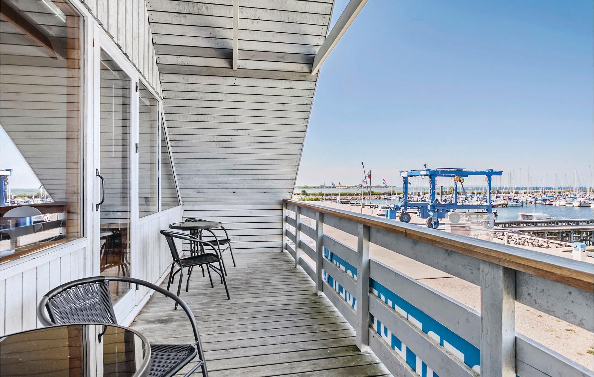 Hvis I vil holde jeres ferie i 1. række og helt ned til vandkanten, er denne feriebolig det oplagte valg. Ferielejligheden ligger i det maritime miljø ved Bogense Marina. Fra lejligheden og terrassen kan I nyde udsigten over havet og marinaen. Specielt i sommerhalvåret er der masser af aktivitet. Ferielejlighedens køkken ligger i åben forbindelse med spiseafdelingen og opholdsstuen, hvorfra der er udgang til terrassen. Der er en gratis trådløs internetforbindelse.