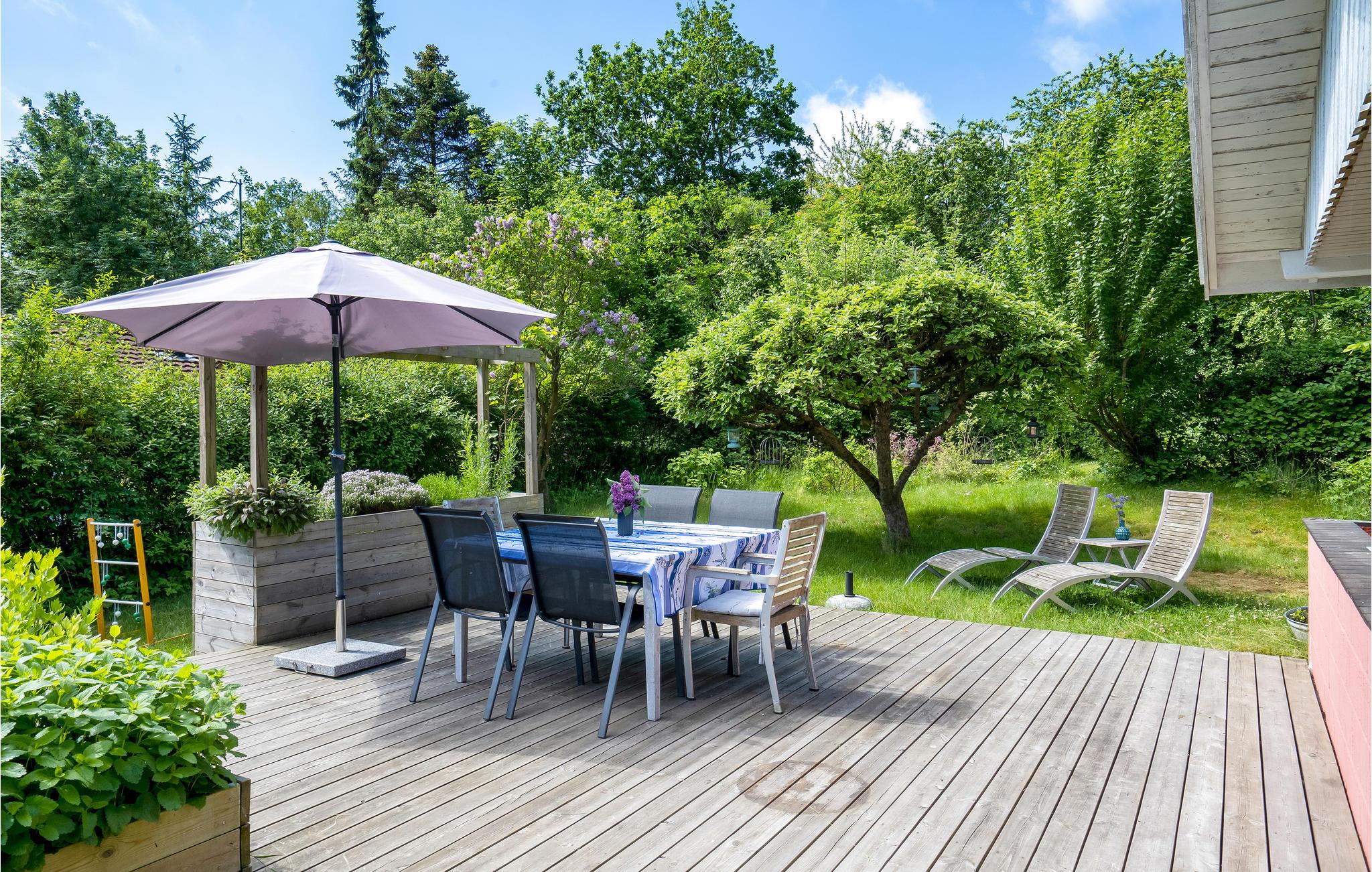 Charmerende sommerhus nær Bognæs med hyggelige terrasser, have og kun 500 m til vandet.
