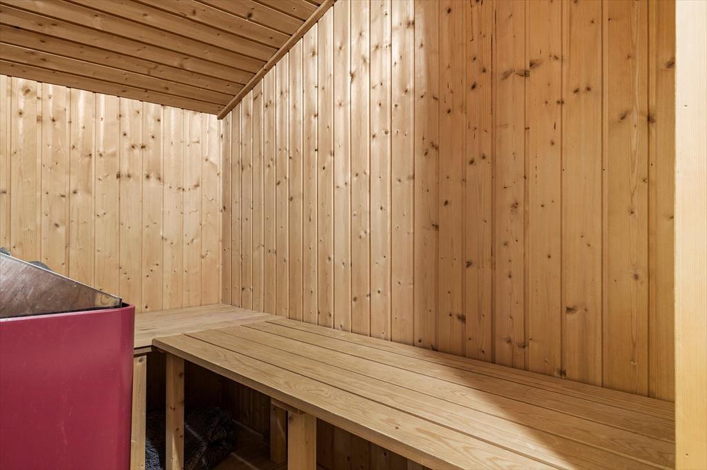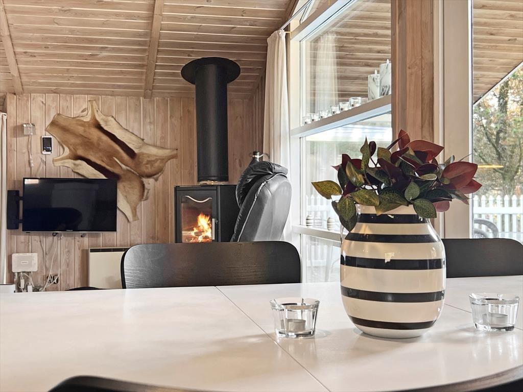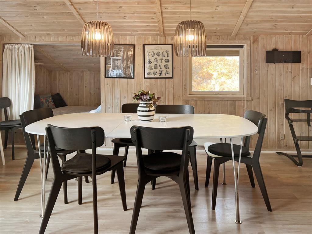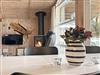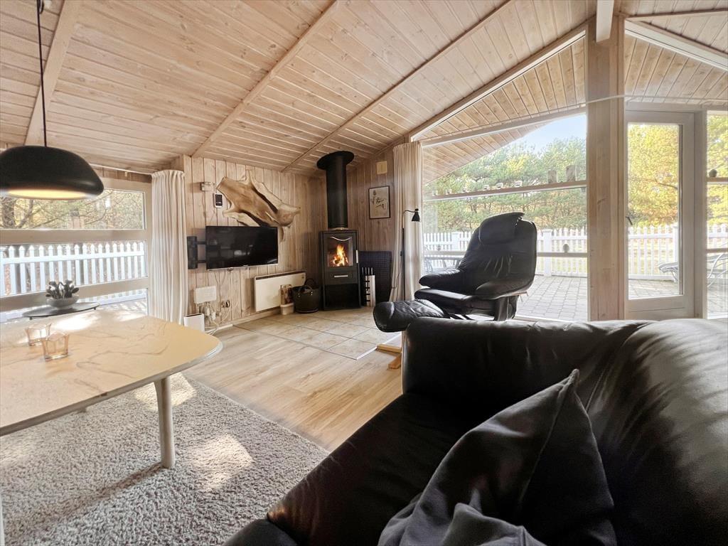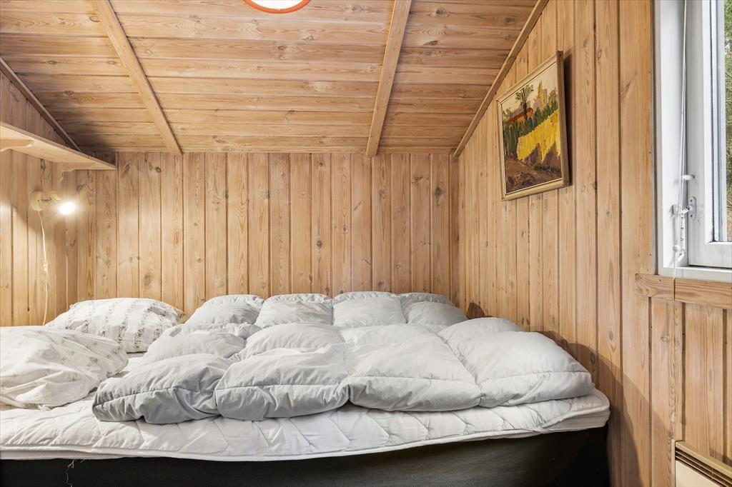 Sommerhuset er indrettet med tre soveværelser, så stuens alkove behøver ikke nødvendigvis at blive brugt til overnatning. Til gengæld fungerer den som en skøn krog, hvis du får lyst til en middagslur eller bare trænger til at ligge ned, mens du læser avisen. Du kan selvfølgelig også slå dig ned i sofaafdelingen nær brændeovnen eller sætte dig ved spisebordet – her har du for øvrigt en fin udsigt til naturgrundens grønne fyrretræer, som er et kønt bagtæppe for hyggestunderne. Skal tempoet sættes helt ned, kan du forkæle dig selv med et spabad og en tur i saunaen, der ligger som del af husets badeværelse.