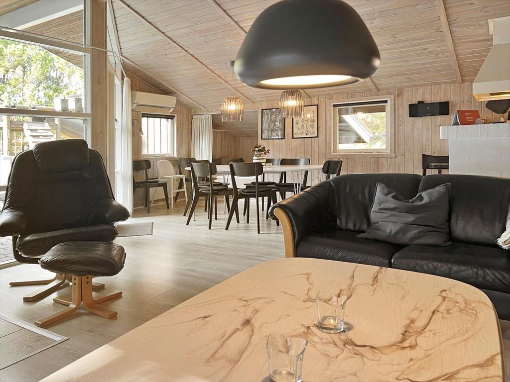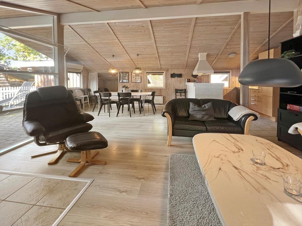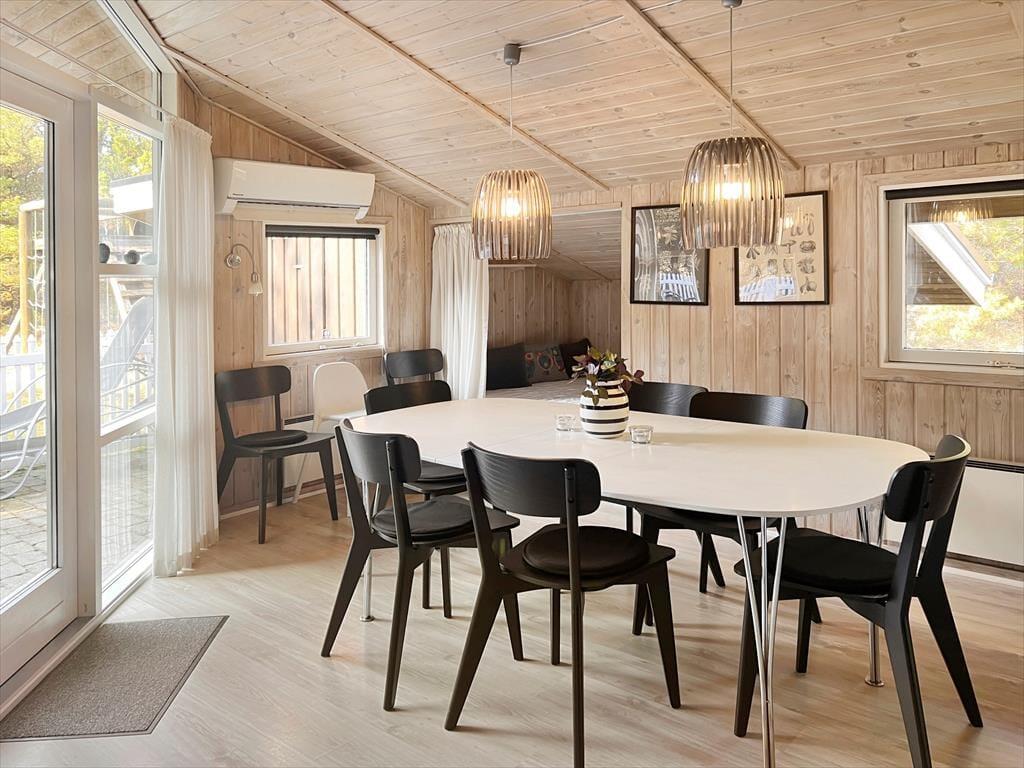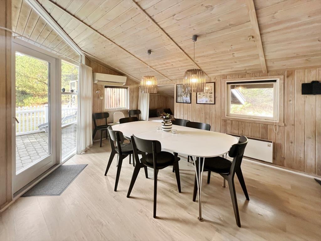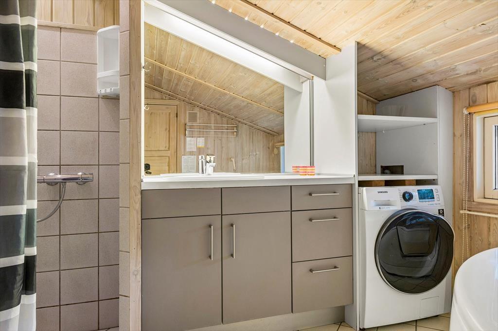 Sommerhuset er indrettet med tre soveværelser, så stuens alkove behøver ikke nødvendigvis at blive brugt til overnatning. Til gengæld fungerer den som en skøn krog, hvis du får lyst til en middagslur eller bare trænger til at ligge ned, mens du læser avisen. Du kan selvfølgelig også slå dig ned i sofaafdelingen nær brændeovnen eller sætte dig ved spisebordet – her har du for øvrigt en fin udsigt til naturgrundens grønne fyrretræer, som er et kønt bagtæppe for hyggestunderne. Skal tempoet sættes helt ned, kan du forkæle dig selv med et spabad og en tur i saunaen, der ligger som del af husets badeværelse.