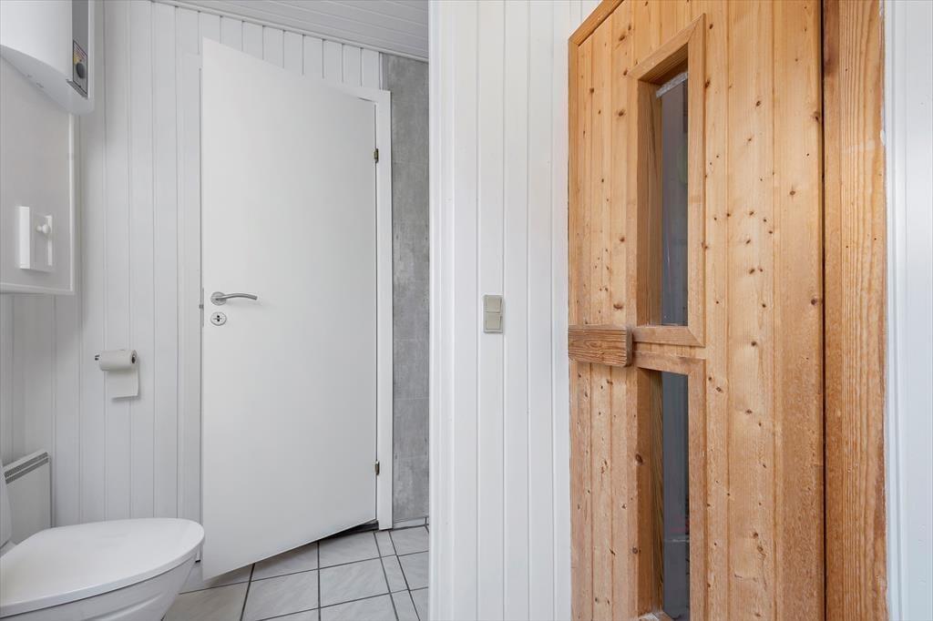På lune sommerdage er det fristende at blive varmet igennem af solen frem for at tage en tur i saunaen. I så fald kan I slå jer ned i de komfortable havemøbler på den store, sydvendte træterrasse. Bliver det for varmt, kan I rykke ind under overdækningen, eller også kan I prøve at finde en god opholdsplads i skyggen fra træerne, der omkranser naturgrunden. Er der små børn med på ferien, bliver gyngerne sikkert et hit, og grillen kan tages i brug, når det er ved at være aftensmadstid.
