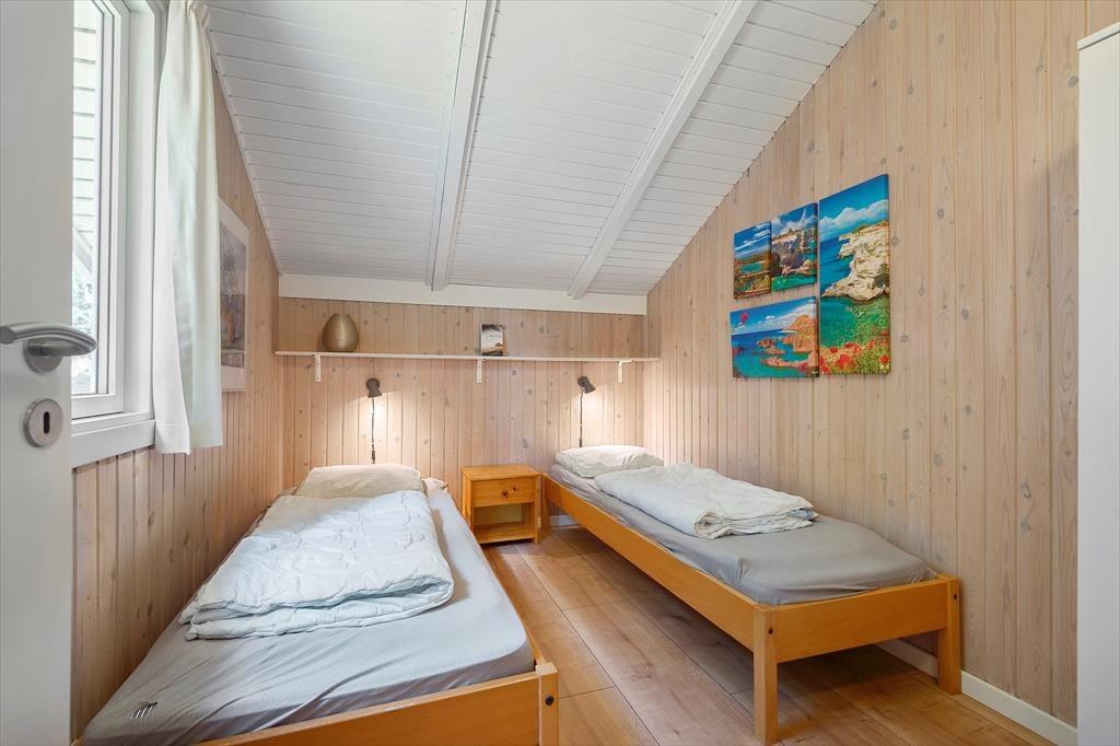Der er tale om en pæn og velholdt feriebolig, som byder på 81 velindrettede kvadratmeter og en fornuftig planløsning, så huset kan nemt rumme seks personer. Atmosfæren er rar og indbydende i alle rum og ikke mindst i stuen, hvor brændeovnen kan skrue op for både varmen og hyggestemningen. I stuen er der god plads til at slænge sig i sofaafdelingen og samles til brætspil og snacks omkring spisebordet, og i den åbne køkkenafdeling kan I sagtens stå flere kokke, hvis I vil være fælles om madlavningen. To soveværelser er indrettet med dobbeltseng og det tredje med to enkeltsenge, og derudover består planløsningen af et badeværelse med tilstødende sauna.
