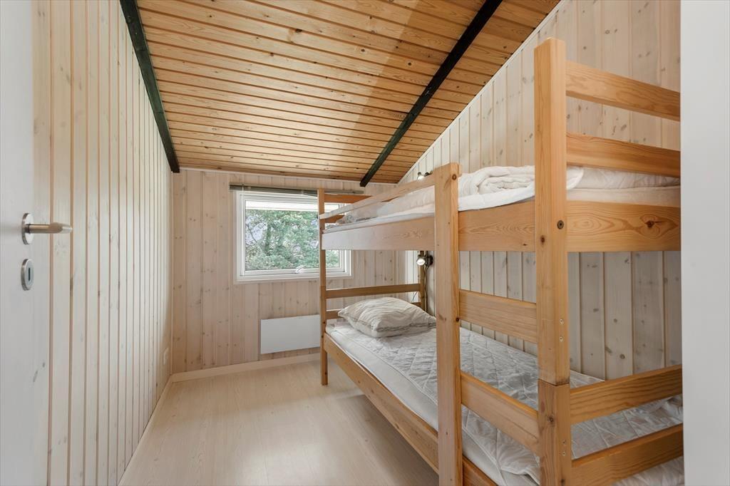 Det klassiske træsommerhus er opført i 1978, og efter en omsorgsfuld renovering i 2015 fremstår det pænt og velholdt. Blandt andet køkkenet er blevet moderniseret, så I har en dejlig arbejdsstation med ovn i ståhøjde, opvaskemaskine og andre lækre detaljer, når aftensmaden skal forberedes. Køkkenet ligger som en integreret del af stuen, der derudover byder på både brændeovn og varmepumpe, spisebord, en blød sofaafdeling og en fin udsigt til de grønne naturomgivelser. Den funktionelle planløsning består i øvrigt af tre soveværelser, en entré med vaskemaskine og tørretumbler samt et badeværelse – og i sidstnævnte kan I slappe af i saunaen på ægte livsnydermanér.