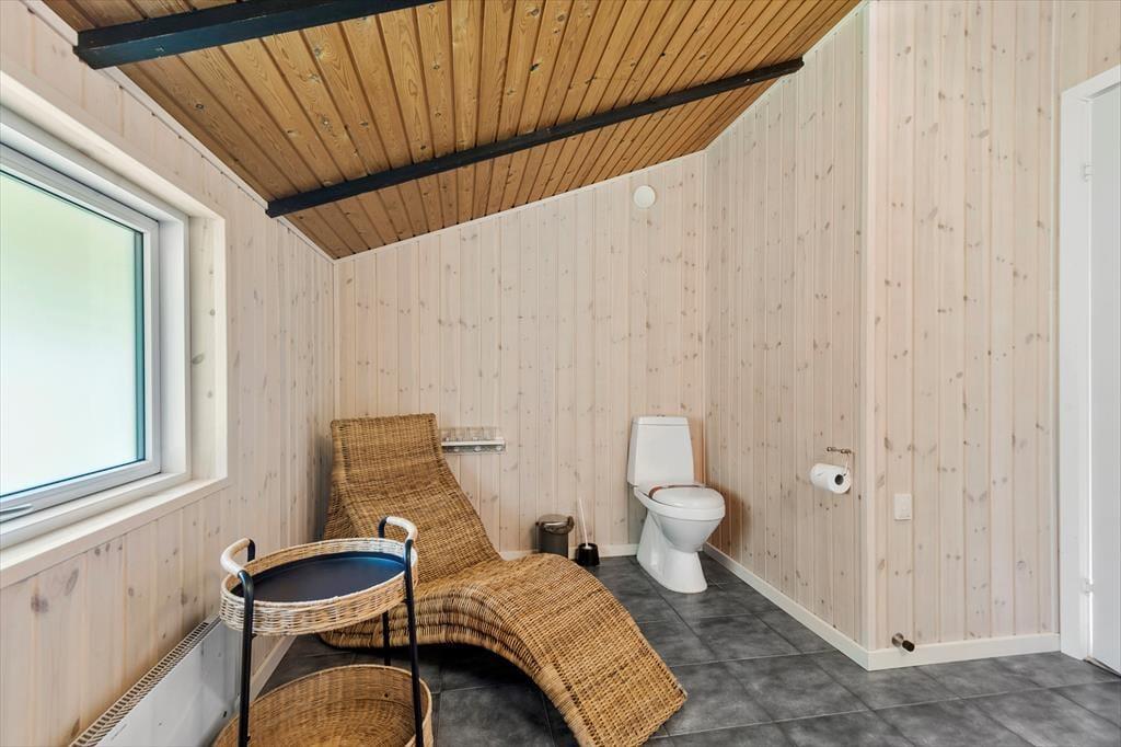 Stuens havedør giver jer direkte adgang til en stor og skøn terrasse. Det er et herligt sted at falde i staver, mens I nyder det gode vejr og udsigten over hedelyng og fyrretræer – og der er for øvrigt både en overdækket og en åben afdeling at vælge imellem. I kan også slå jer ned på østsiden af sommerhuset, hvor der ligger endnu en terrasse, som især er solrig først på dagen.