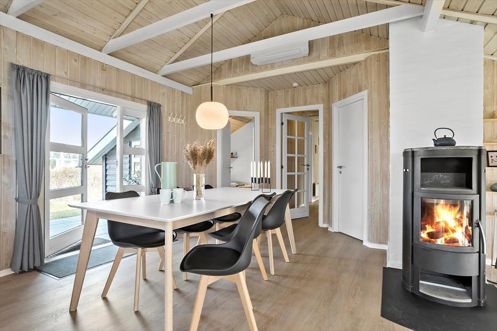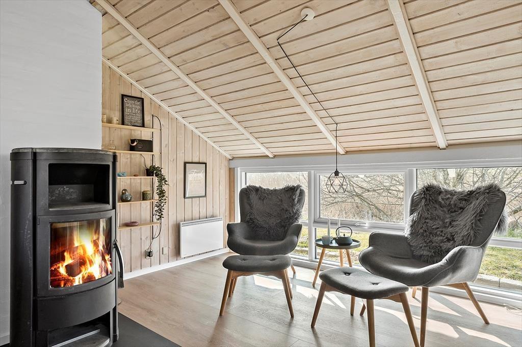 Sommerhuset, der byder på hele 137 m2 inden døre, giver jer en fuldendt ramme om ferielivet. Planløsningen gør det muligt at samles op til otte personer inden døre, for her er fire gode værelser med dobbeltsenge og garderobeskabe foruden et stort badeværelse, en stue og et køkken. Sidstnævnte er netop blevet udskiftet i 2022, hvilket er afslutningen på en vellykket modernisering af sommerhuset. Det flotte og veludstyrede køkken ligger for øvrigt i åben forbindelse med stuen, og alt i alt er det et herligt opholdsrum med loft til kip, brændeovn og fin udsigt til naturgrunden. Udsigten kan I for øvrigt også nyde, når I slapper af i det lækre spabad, der står på badeværelset ved siden af en sauna.