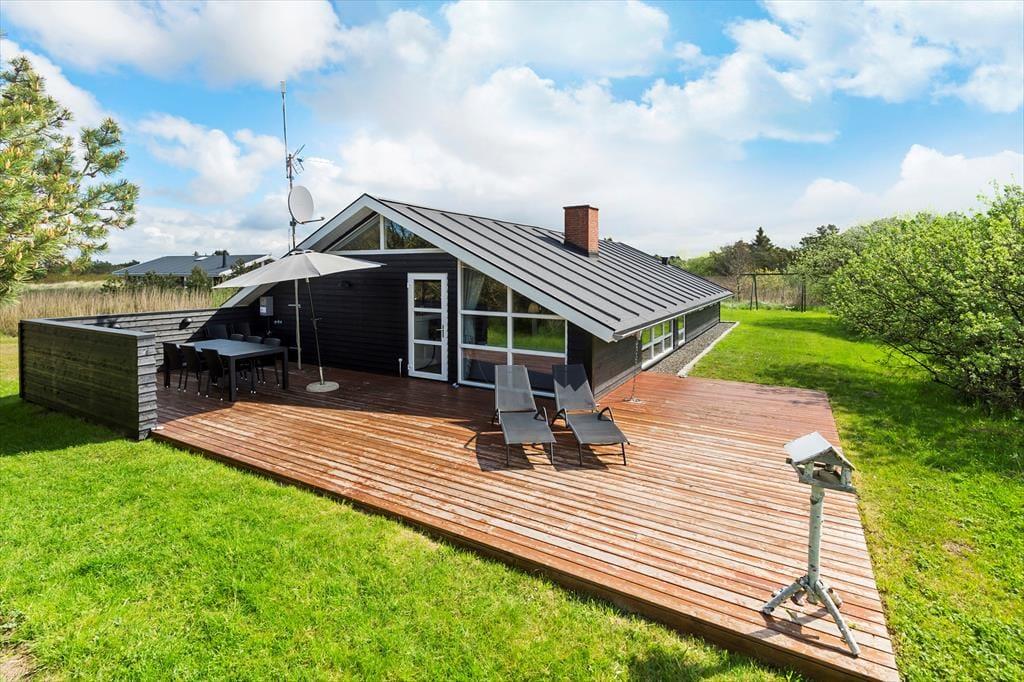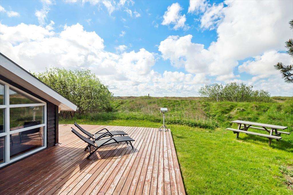 Det er herligt at have både spa og sauna i huset – men om sommeren vil I måske hellere lade solens stråler varme jer ude på terrassen. Det er en stor træterrasse, der er orienteret mod sydvest, og derfor er den solrig det meste af dagen. I kan også sætte jer ved bord-bænke-sættet på græsplænen på den 2.502 m2 store naturgrund, og hvis I går op på den lille vold, der omkranser grunden, bliver I belønnet med den fineste udsigt over det flade landskab ud mod Lakolk.