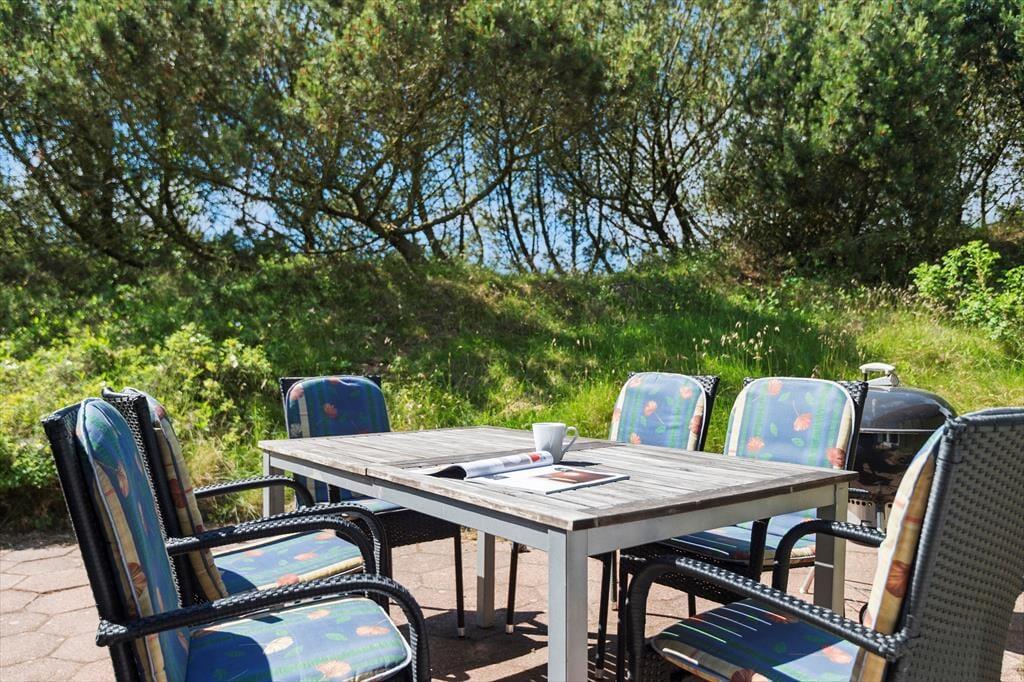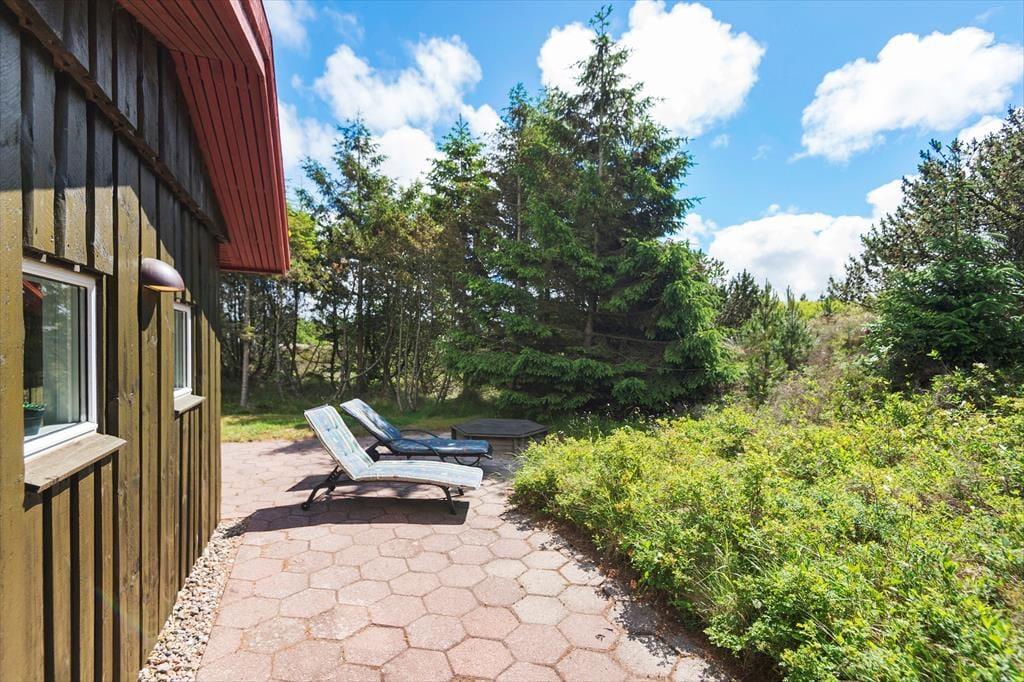 Rundt om huset breder flisebelægningen sig, så I har mange solkroge og ugenerede opholdspladser at vælge imellem. Den store naturgrund er kuperet, og derfor ligger det sydvendte terrassemiljø som en læ fyldt gryde, hvor I kan være helt jer selv. På grunden er der for øvrigt gyngestativ og sandkasse til de yngste feriegæster, mens bilen kan parkeres trygt i garagen.