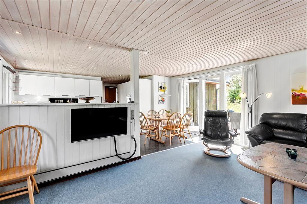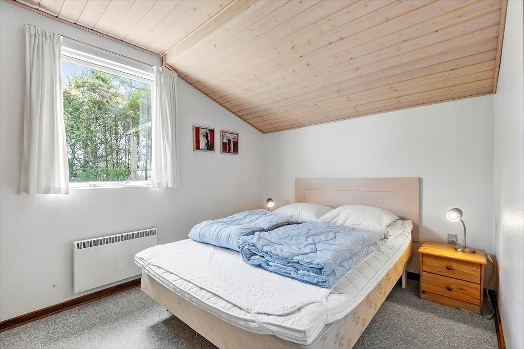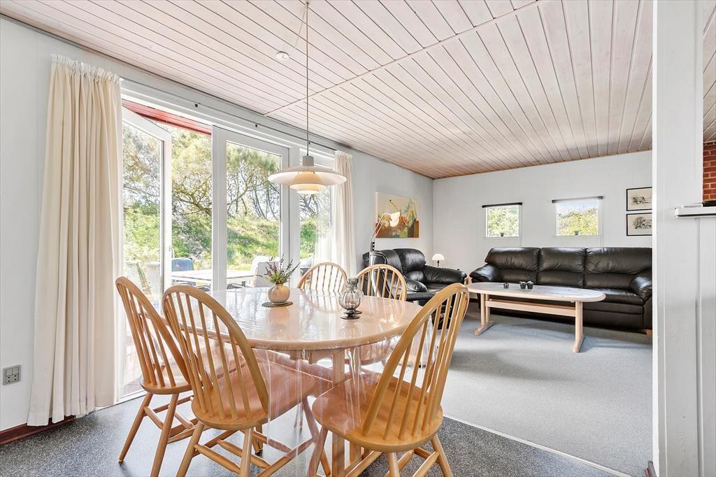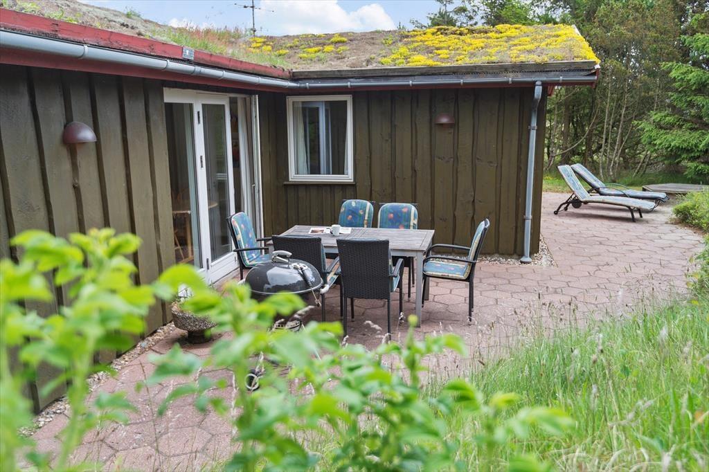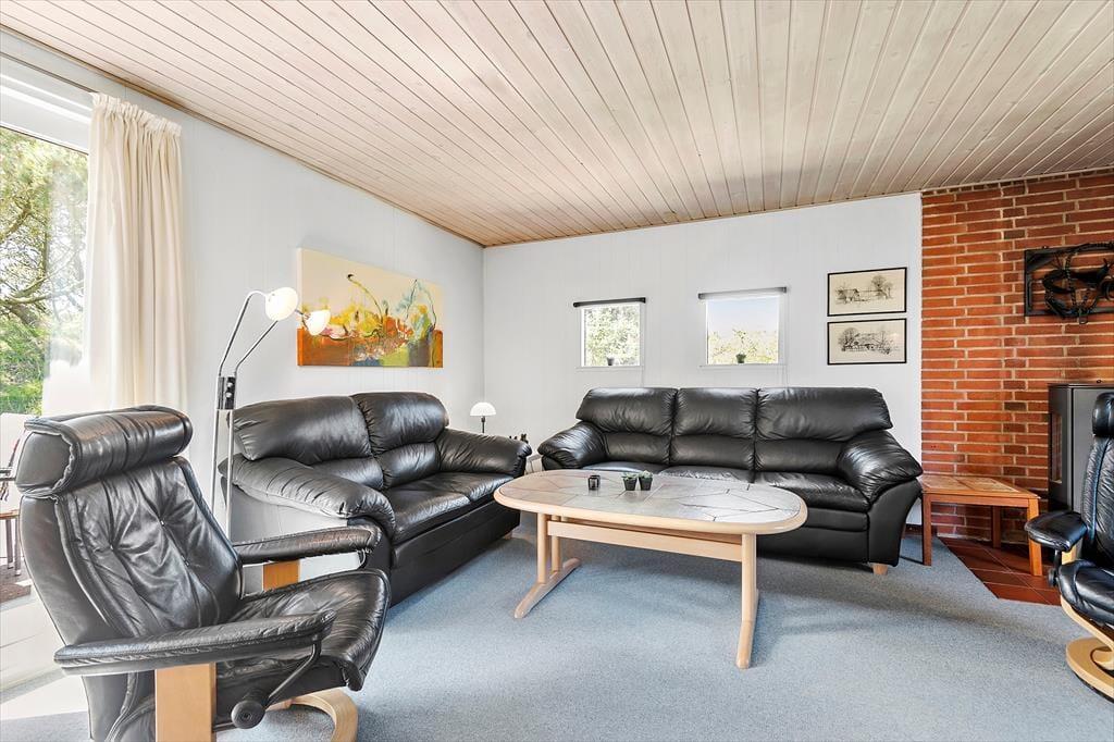 Selv når I opholder jer inden døre, har I fornemmelsen af at være tæt på naturen, for gennem vinduerne kan I se lige ud på grundens krogede fyrretræer og lyngplanter. Udsigten kan blandt andet nydes fra husets store og flot moderniserede opholdsrum, som er udstyret med brændeovn og et lækkert åbent køkken. Køkkenafdelingen er stor, så I kan sagtens hygge jer sammen om madlavningen – eller også kan resten af familien sidde ved spisebordet og holde kokken med selskab. Også husets tre soveværelser, som alle er udstyret med dobbeltseng, præsenterer sig på lys og indbydende vis, og endelig består planløsningen af et godt badeværelse med gulvvarme og bruseniche.