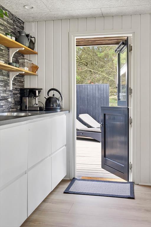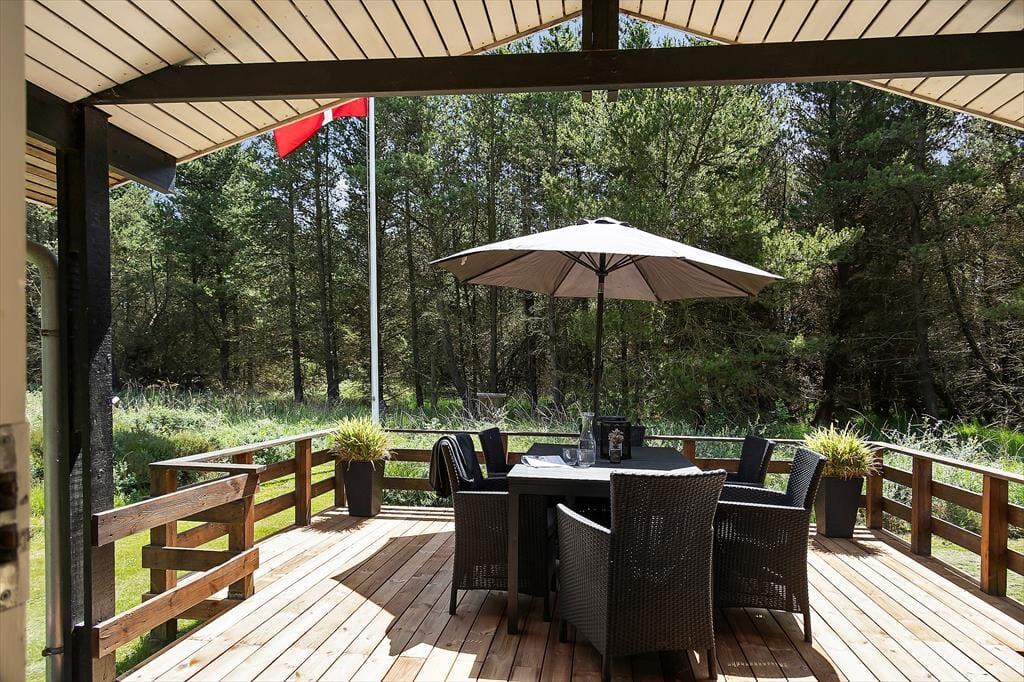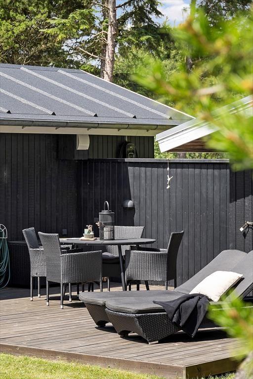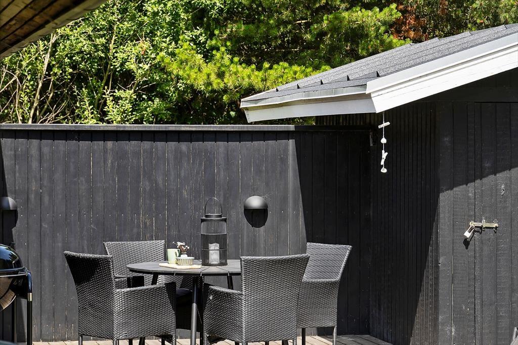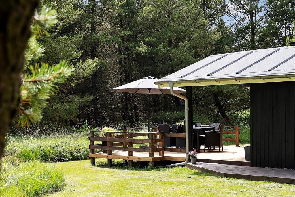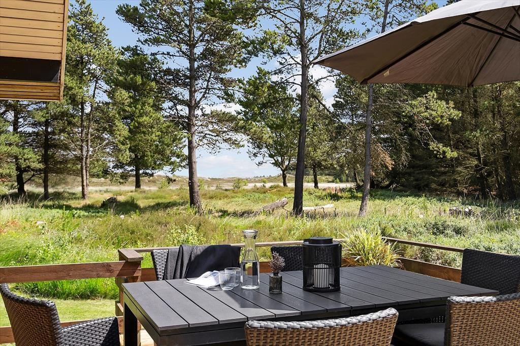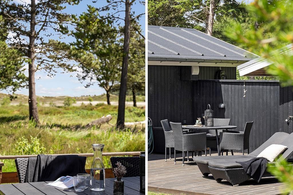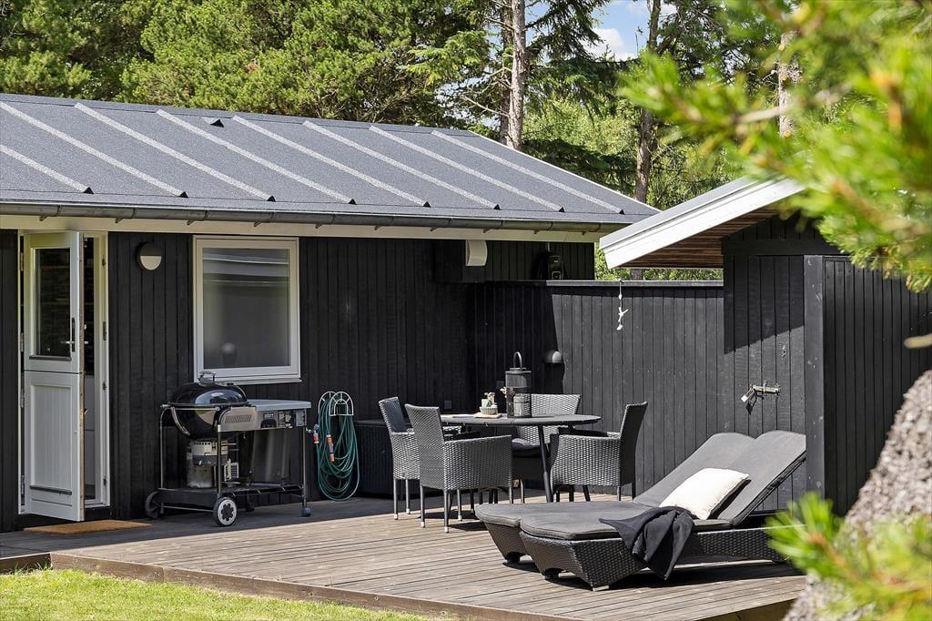 På solrige dage kan hyggestunderne også oplagt finde sted ude i det fri på de dejlige terrasser. Der er flere at vælge imellem, blandt andet en sydvendt, delvist overdækket terrasse og en vestvendt, der ligger i læ mellem husets længer som en herlig oase. Uanset hvor I slår jer ned, kan I nyde freden og privatlivet på den 2500 m2 store og ugenerede naturgrund.